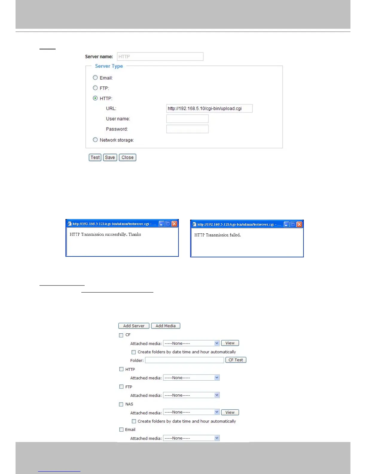 HTTP: Select to send the media les to an HTTP server when a trigger is activated.