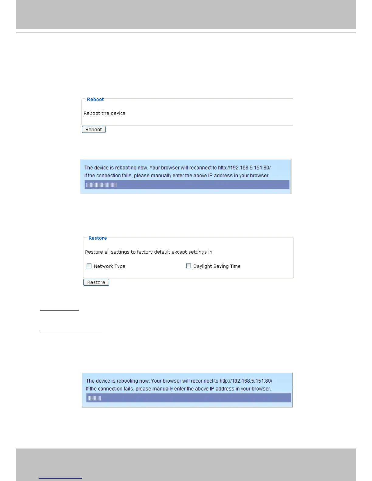 This feature allows you to reboot the Network Camera, which takes about one minute to complete� When