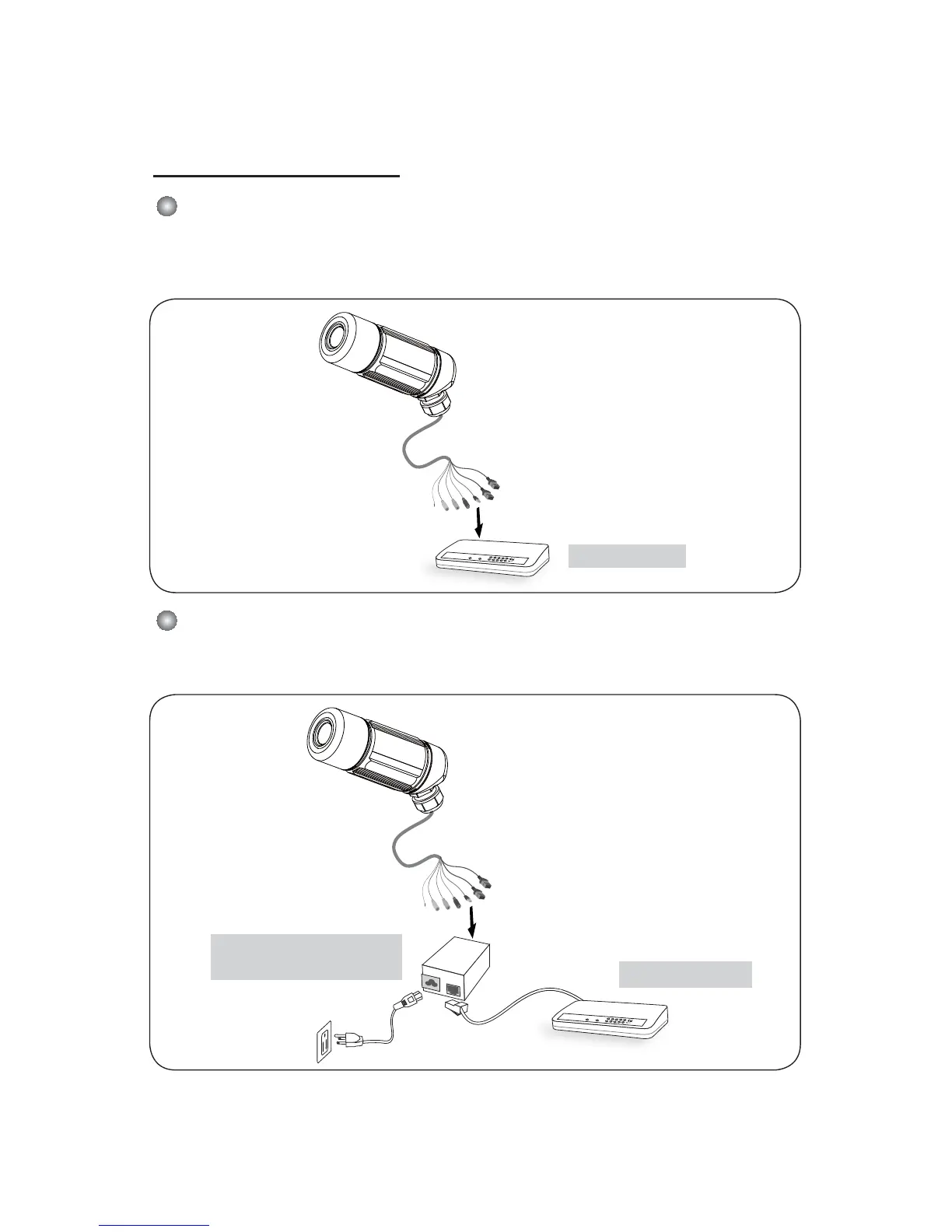 Use a PoE power injector (optional) to connect between the Network Camera and