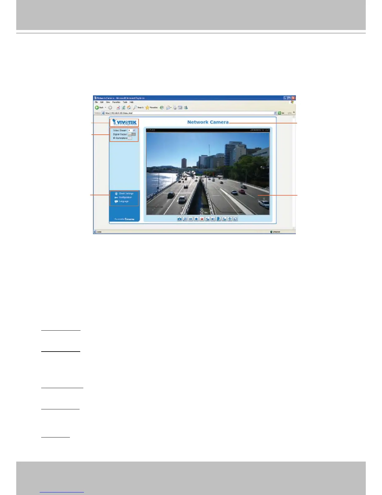 Conguration: Click this button to access the conguration page of the Network Camera. It is suggested