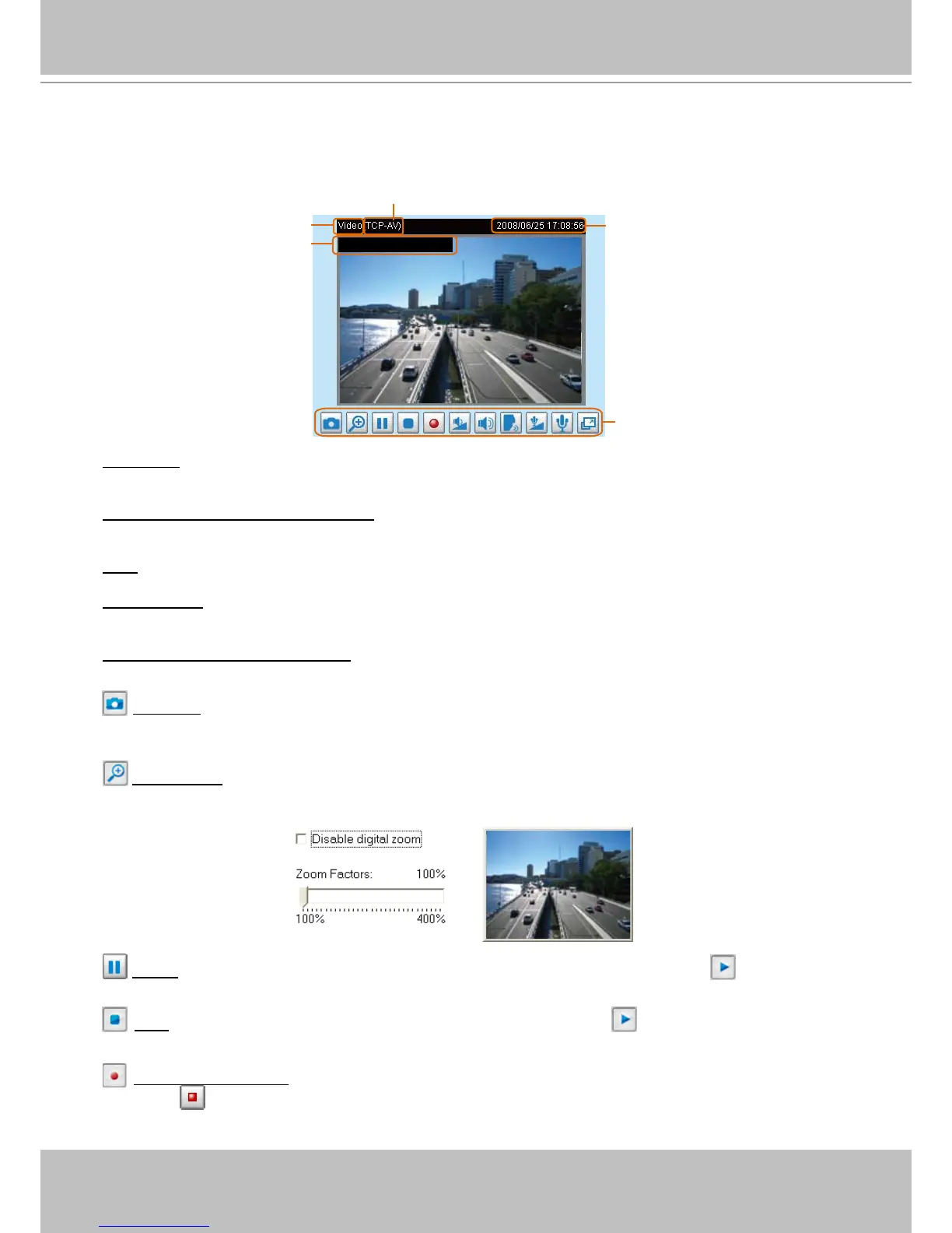 Stop: Stop the transmission of the streaming media� Click the Resume button to continue