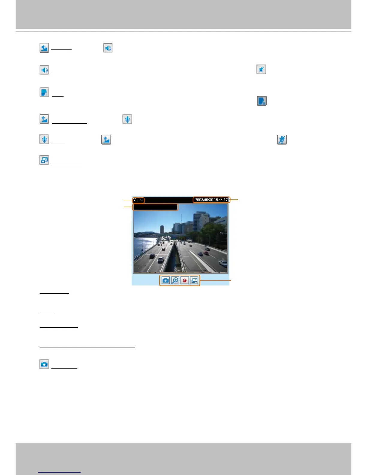 Video and Audio Control Buttons: Depending on the Network Camera model and Network Camera