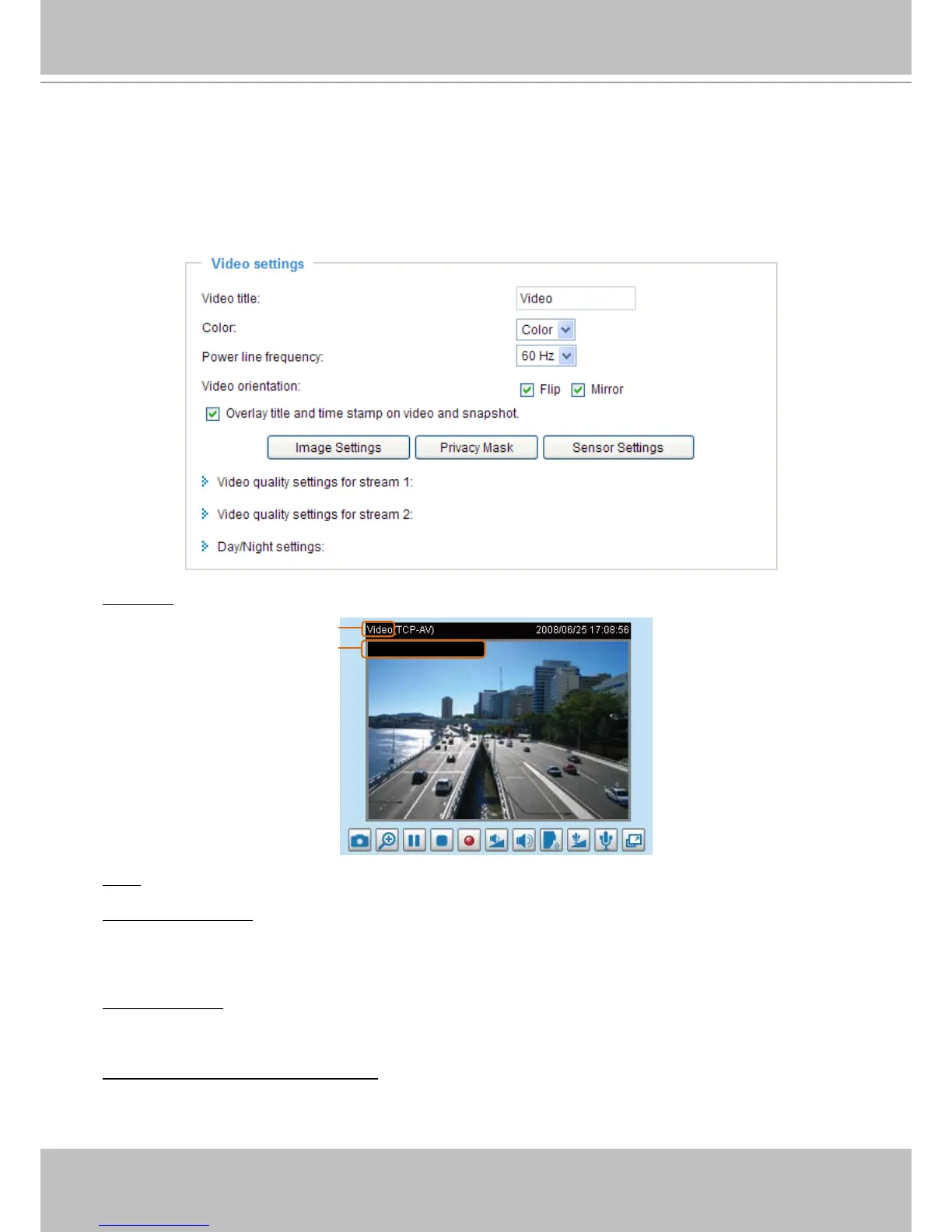 Video orientation: Flip--vertically reect the display of the live video; Mirror--horizontally reect the display