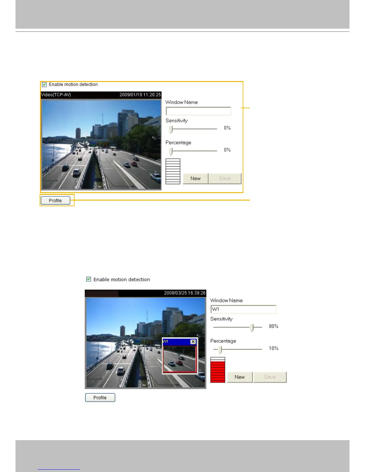 This section explains how to congure the Network Camera to enable motion detection. A total
