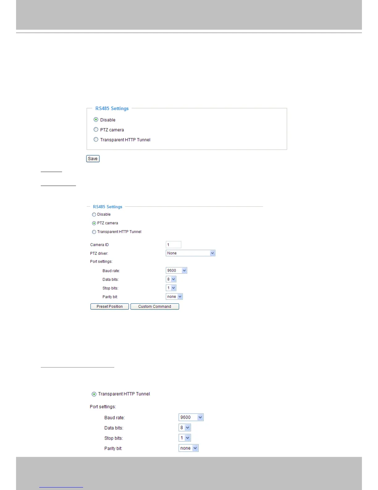 interface rst. Then you can congure the PTZ driver and RS485 port with the following settings.