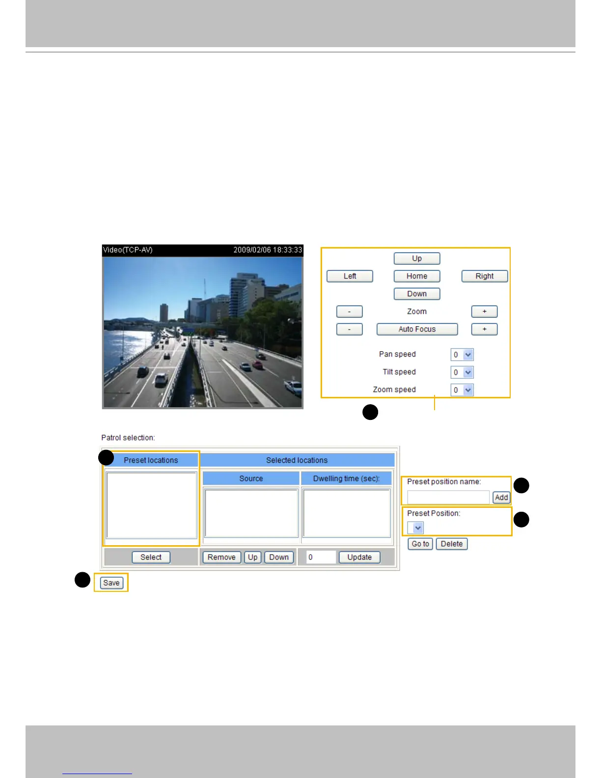 page. You can also select preset positions for the camera to patrol. A total of 20 preset positions can be