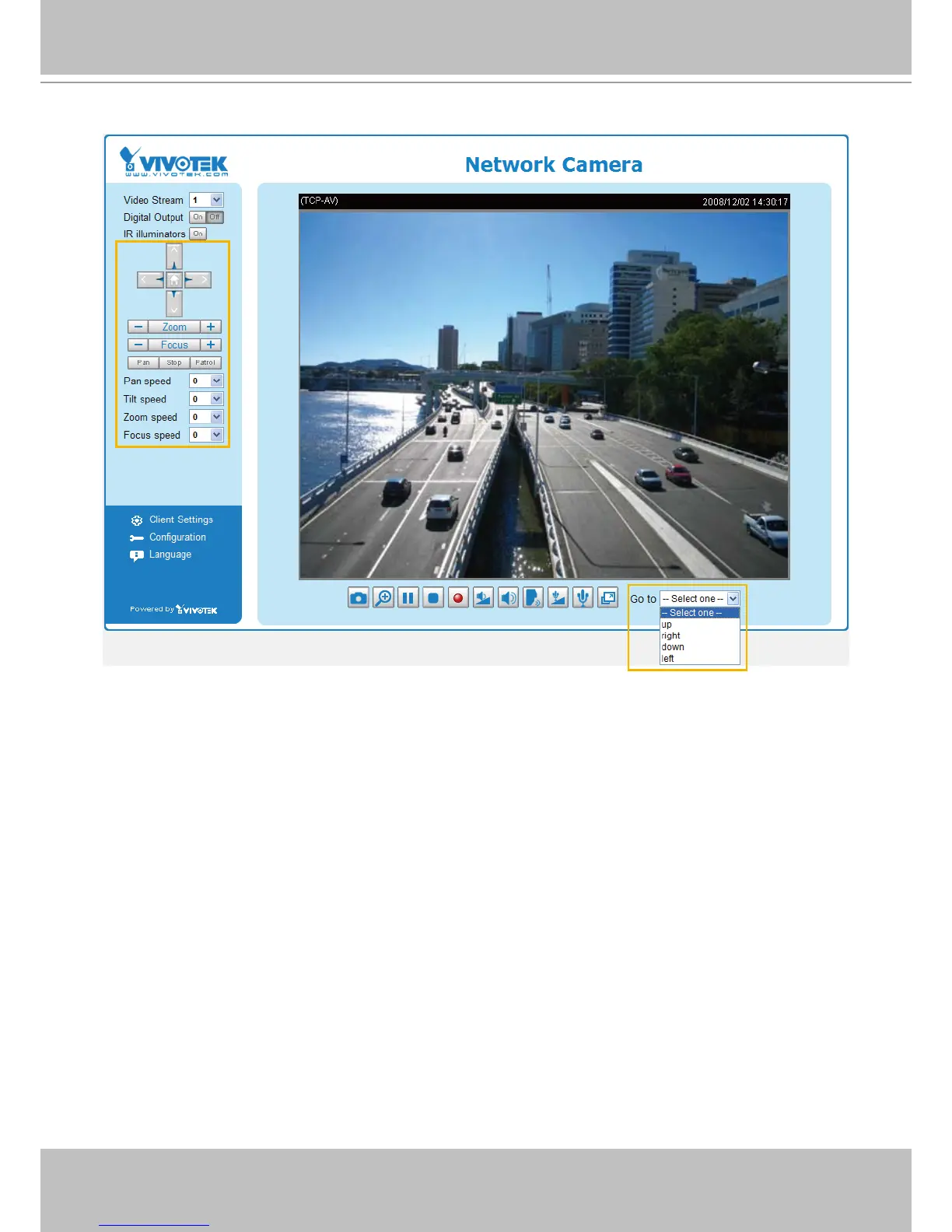 The Camera Control Panel and Preset Positions will be displayed on the home page: