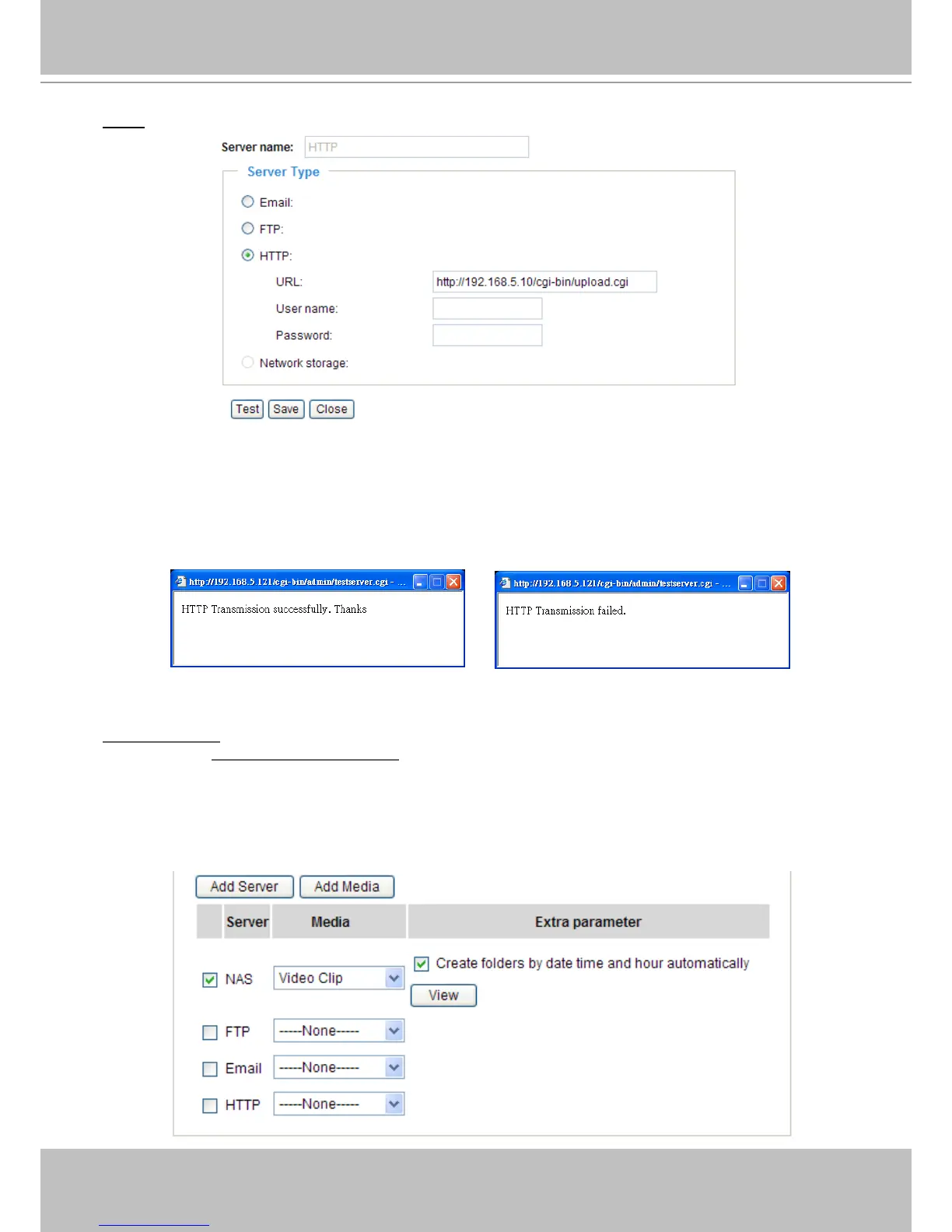 To verify if the HTTP settings are correctly congured, click Test� The result will be shown in a pop-up