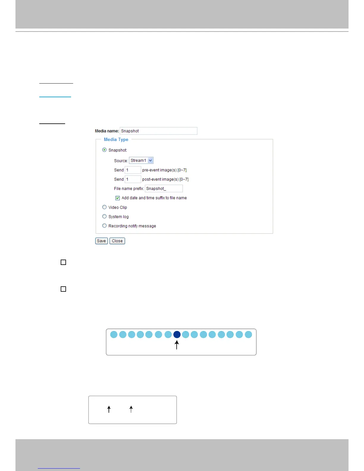 There are three choices of media types available: Snapshot, Video Clip, and System log�