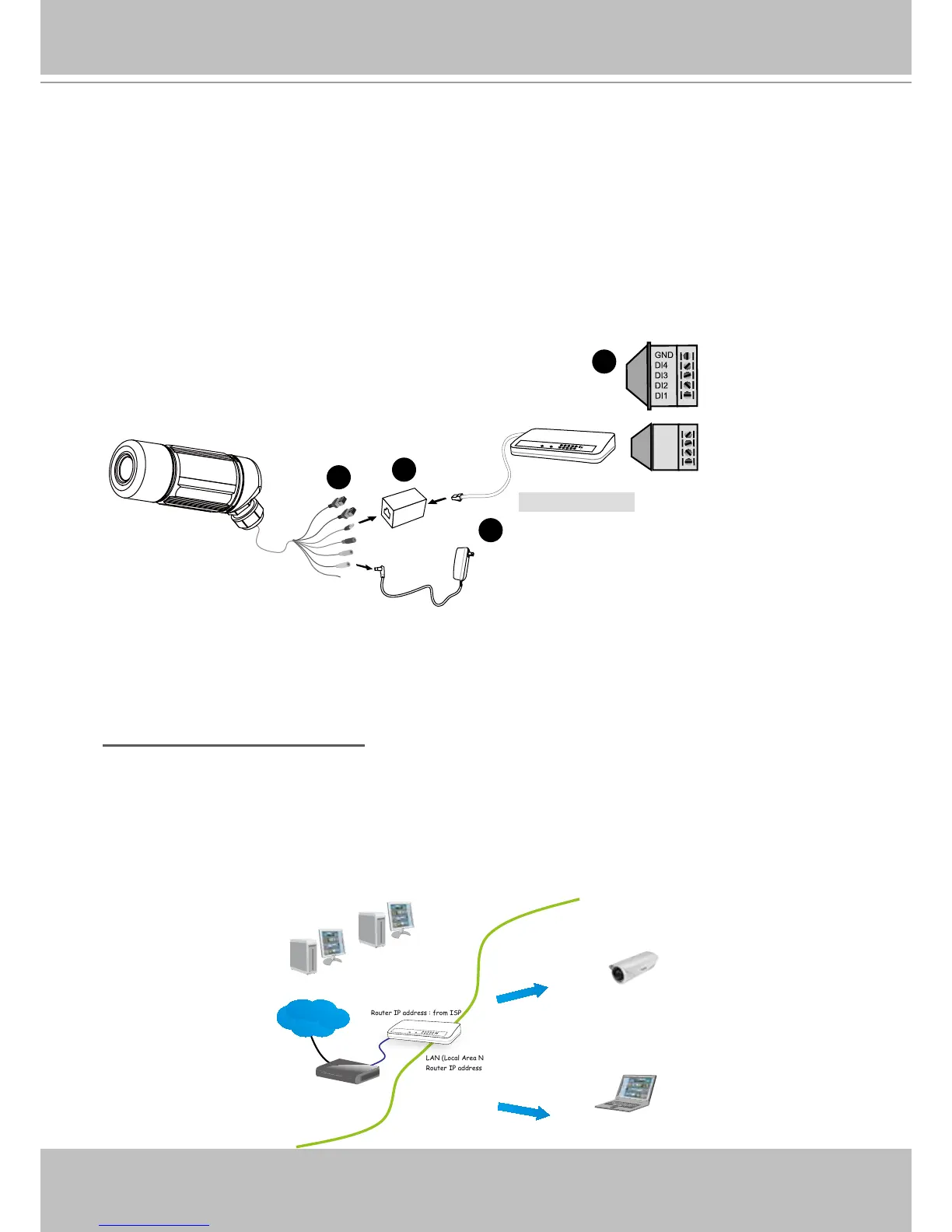 1� Connect your Network Camera behind a router, the Internet environment is illustrated below�