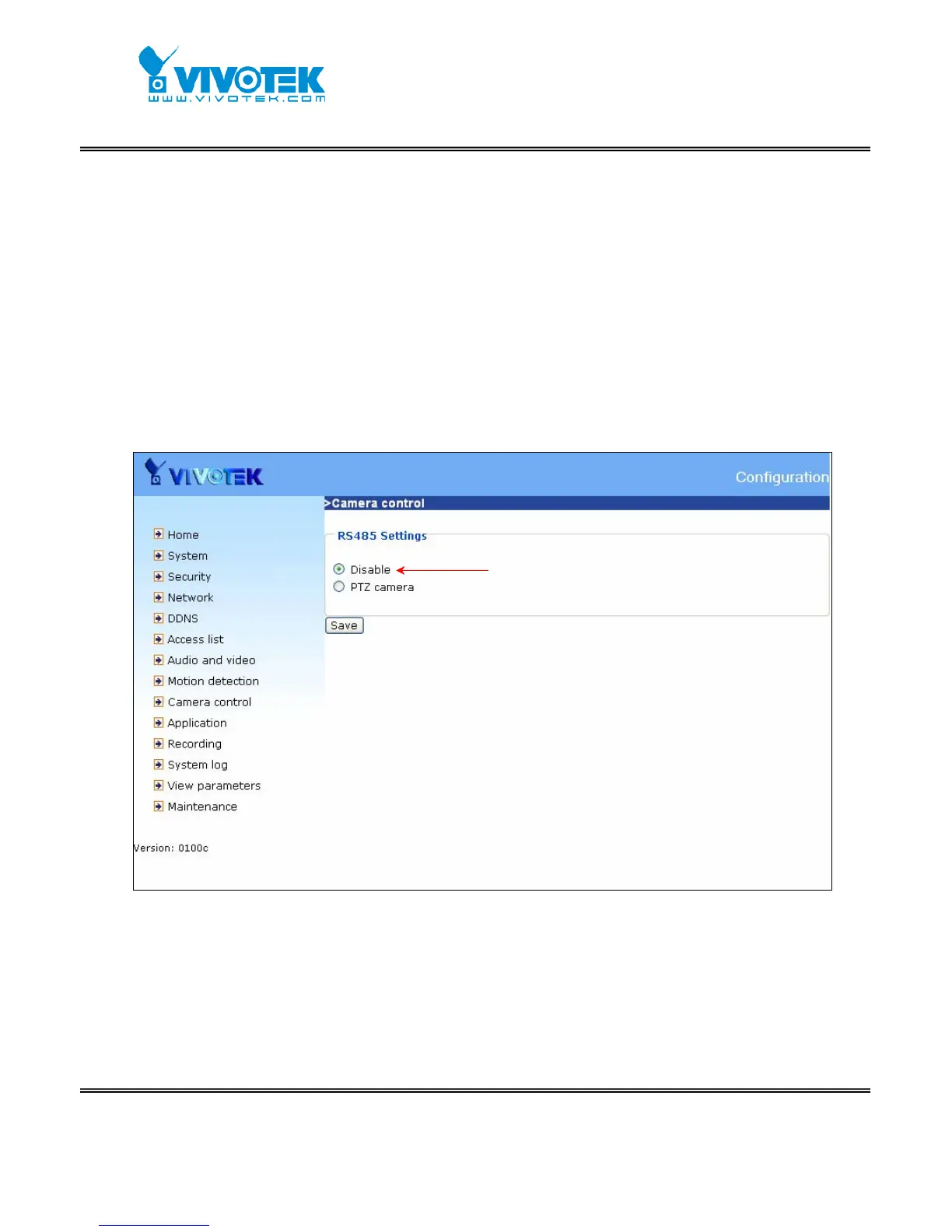 In camera control page, if user configures “RS485 Settings” as “Disable”, it means