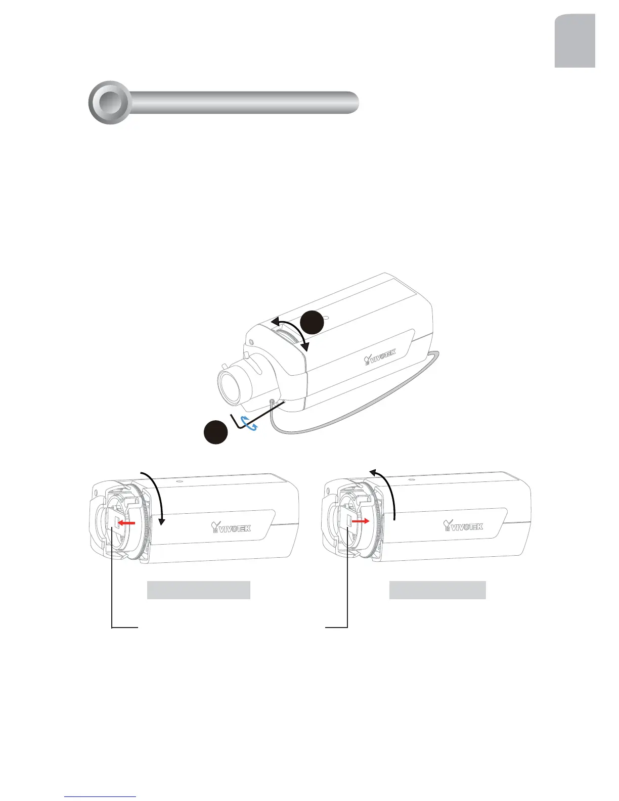 1. Use the supplied L-type hex key wrench to loosen the ring screw; the adjustment