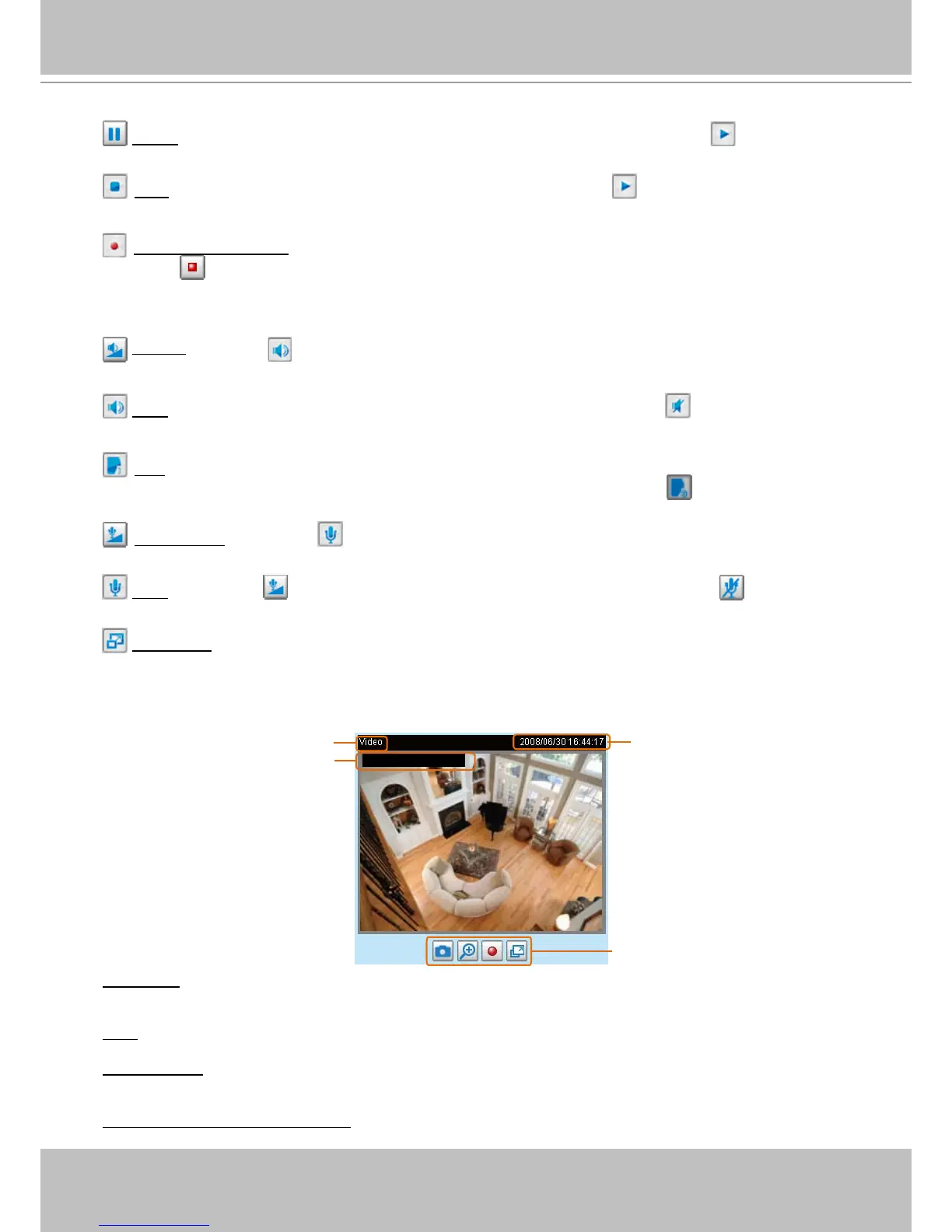 Pause: Pause the transmission of the streaming media� The button becomes the Resume button