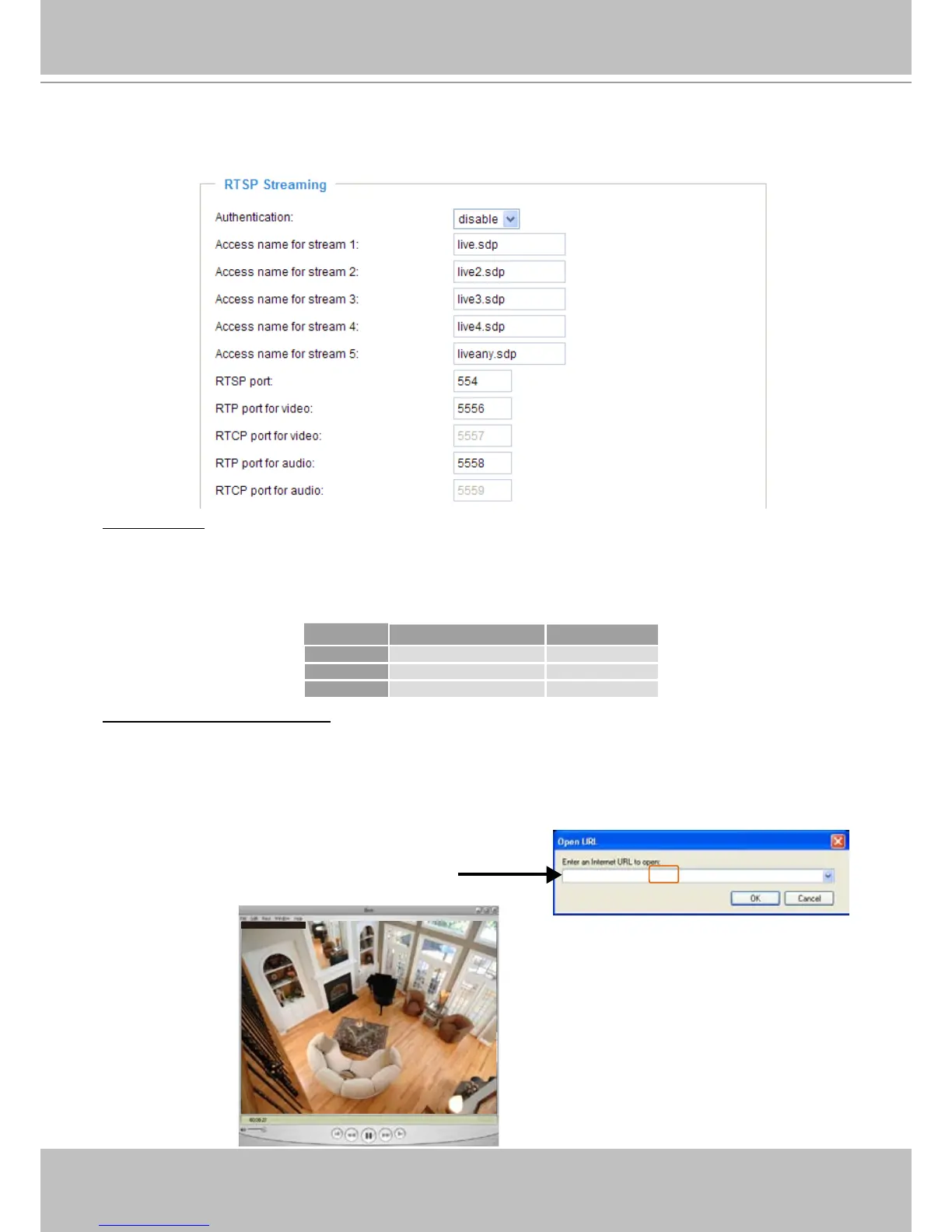 MPEG-4 and use the following RTSP URL command to request transmission of the streaming data�