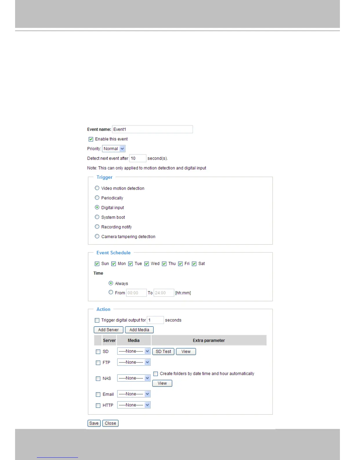 To set an event with recorded video or snapshots, it is necessary to congure the server and
