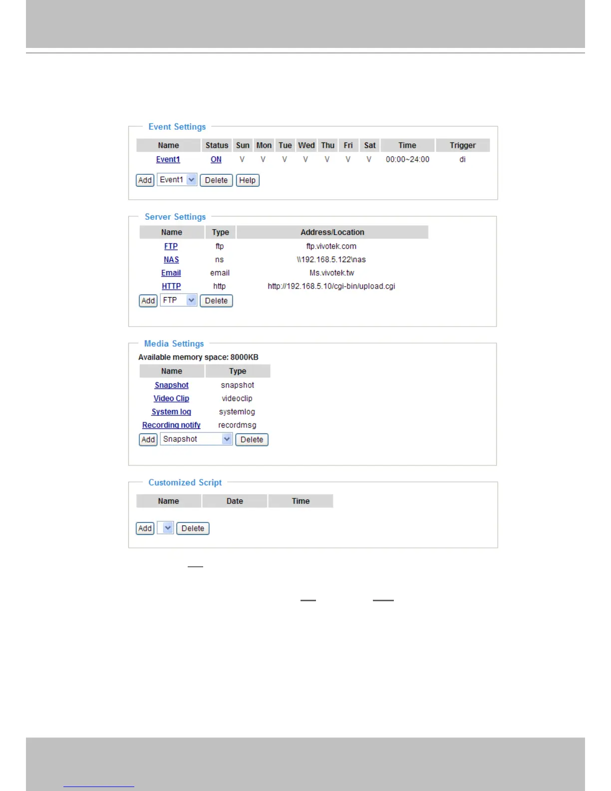 Note that only when the media setting is not being applied to an event setting can it be deleted�