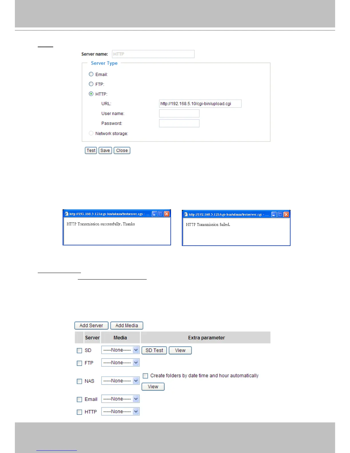 To verify if the HTTP settings are correctly congured, click Test� The result will be shown in a pop-up
