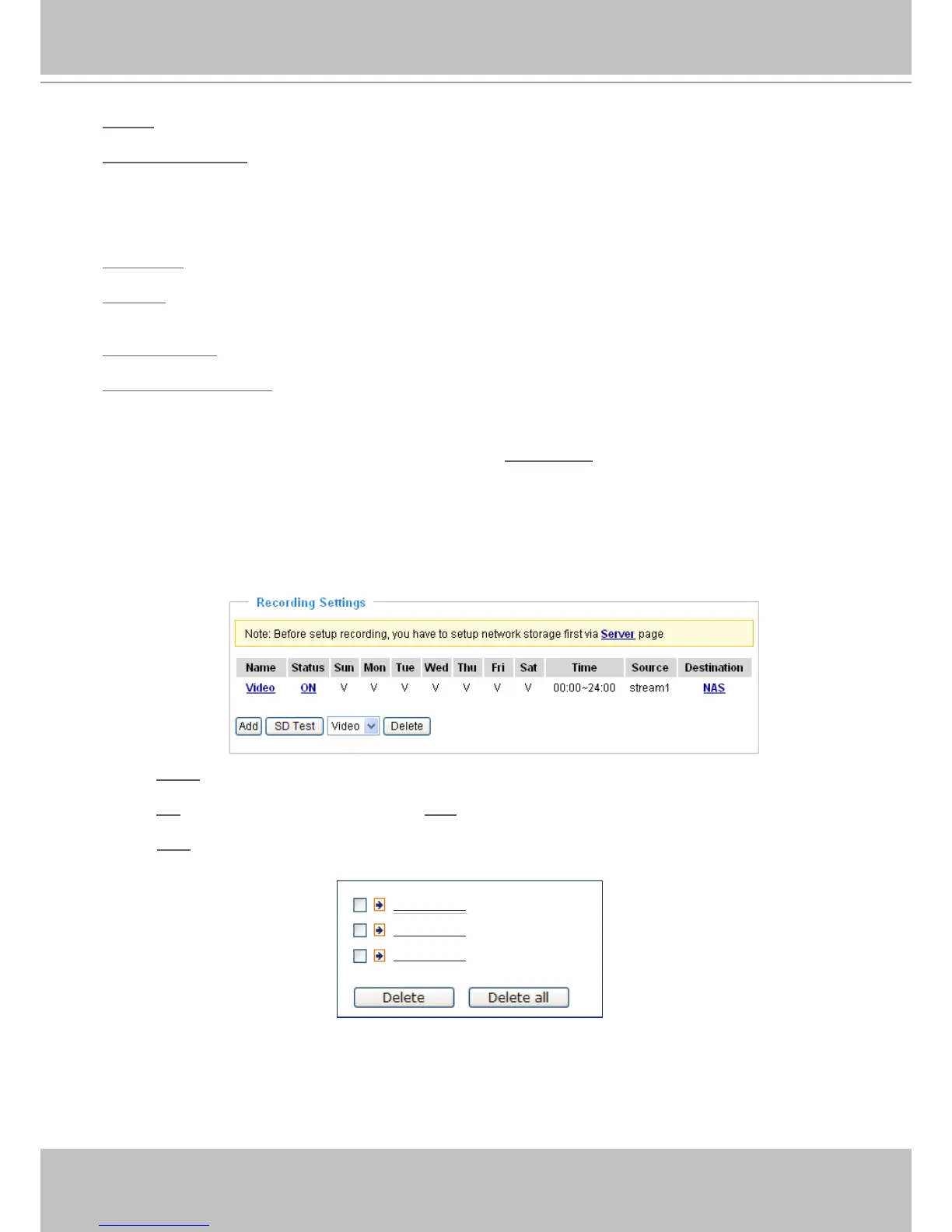 ■ Click Video (Name): Opens the Recording Settings page to modify�