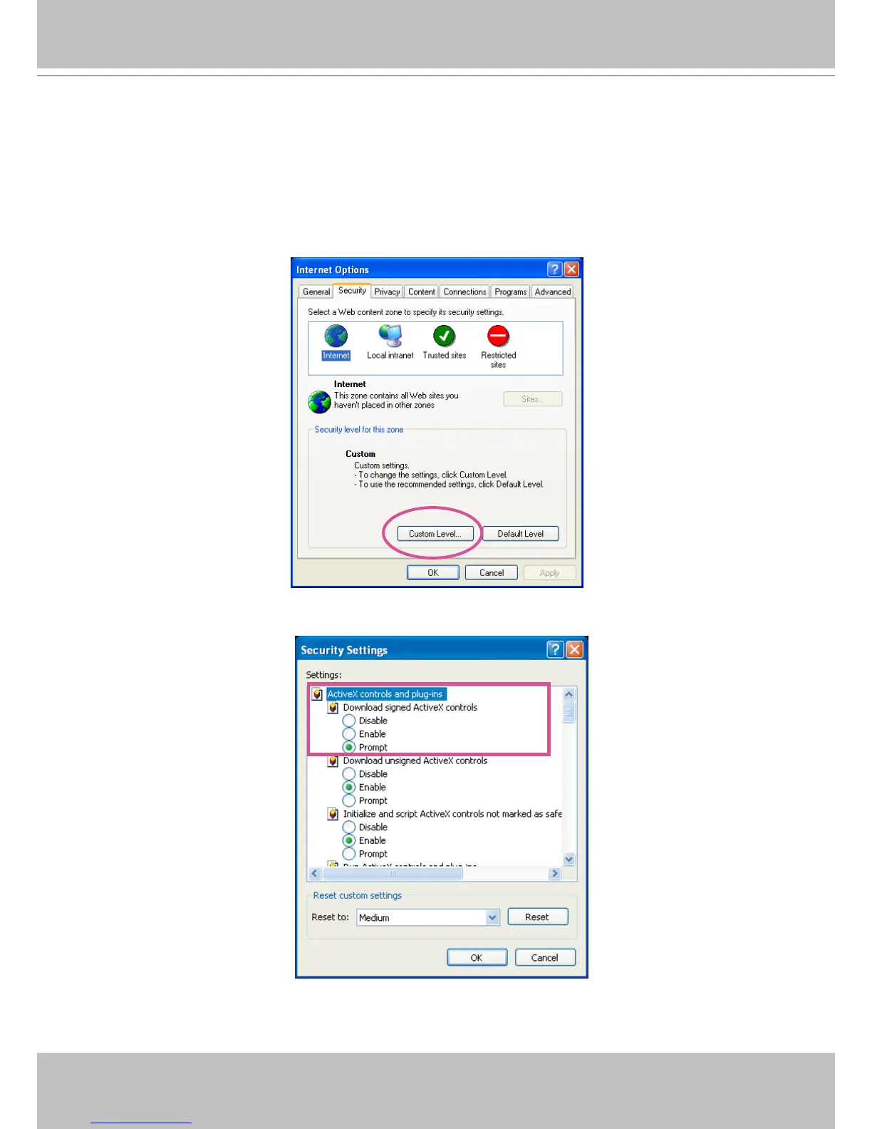 ► If you see a dialog box indicating that your security settings prohibit running ActiveX