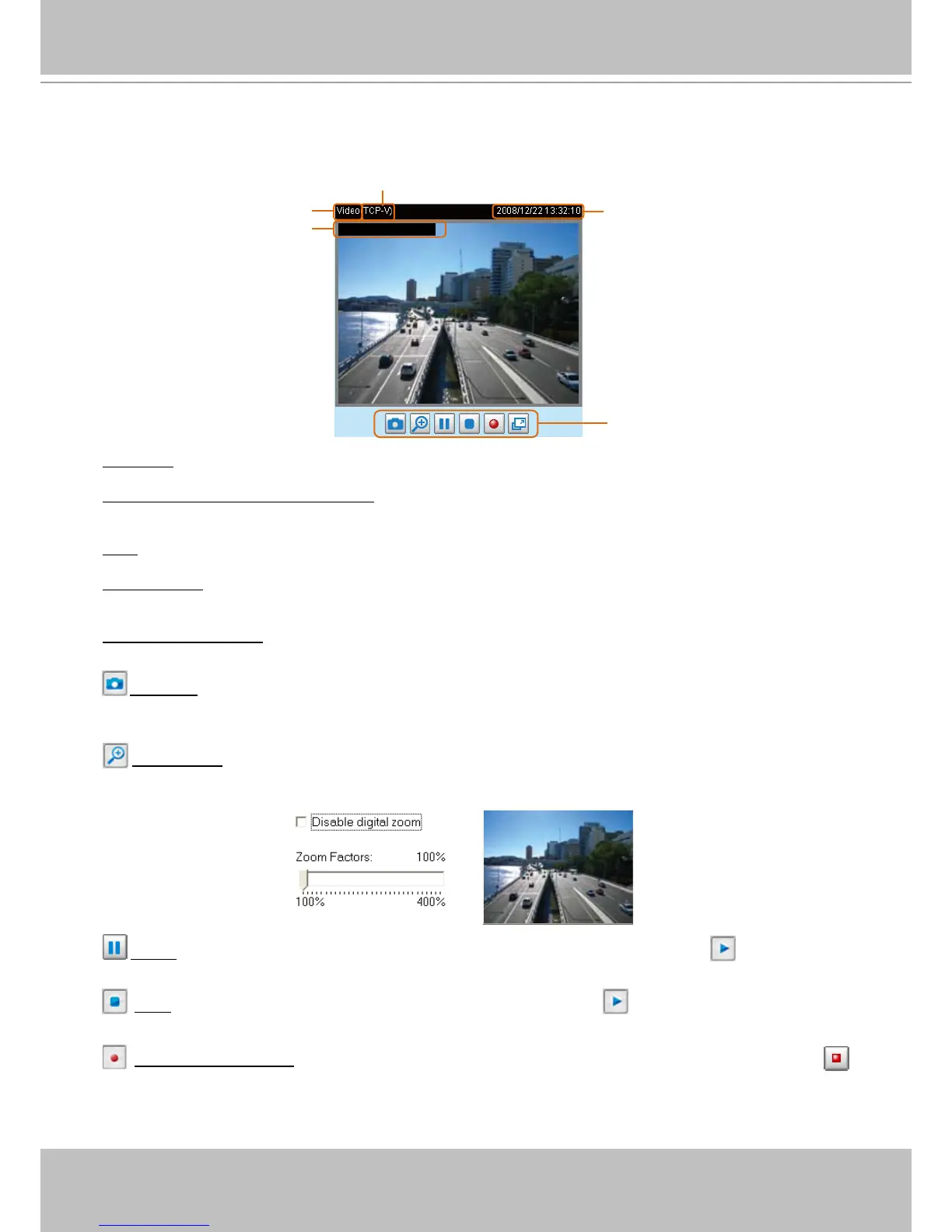 Stop: Stop the transmission of streaming media� Click the Resume button to continue