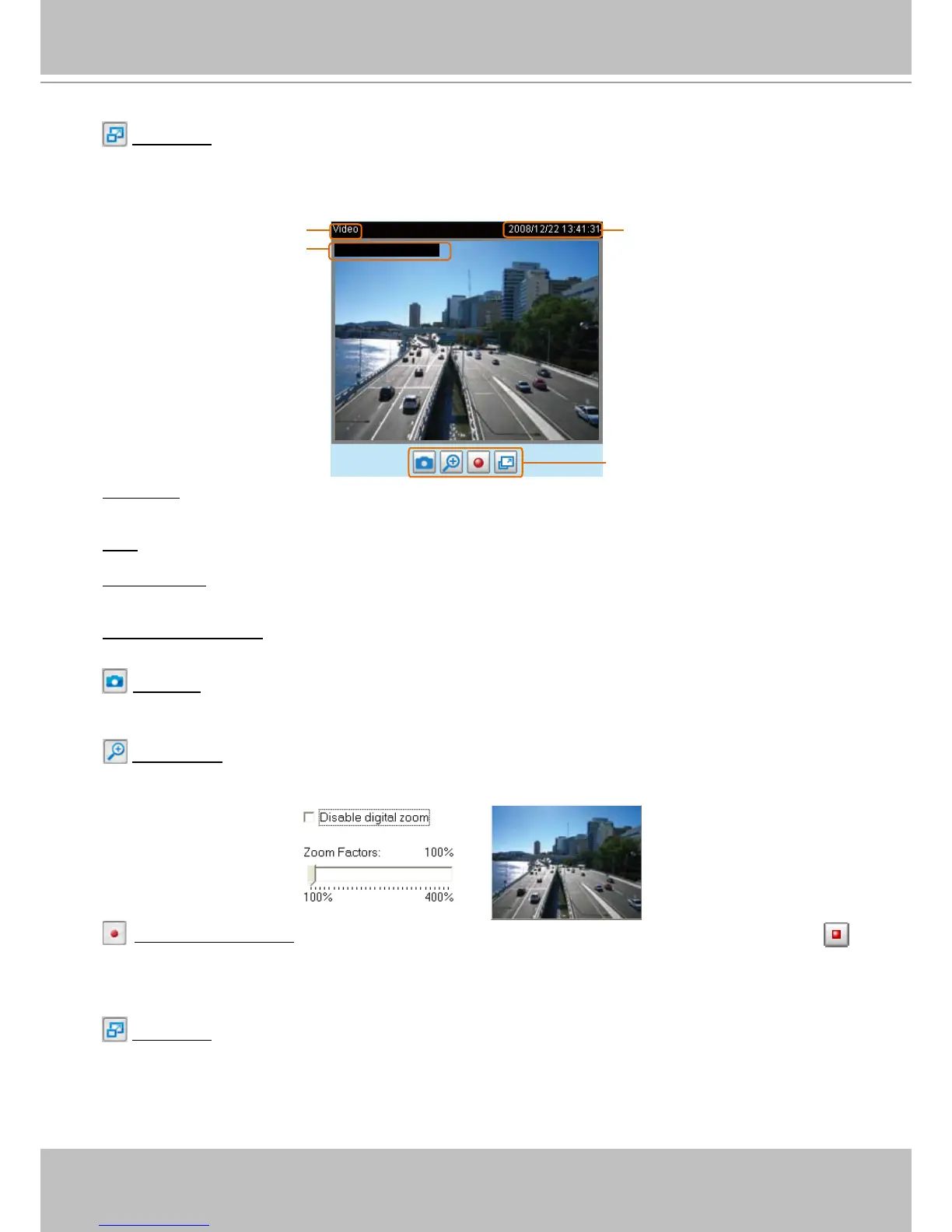 Video Control Buttons: Depending on the Network Camera model and Network Camera conguration,