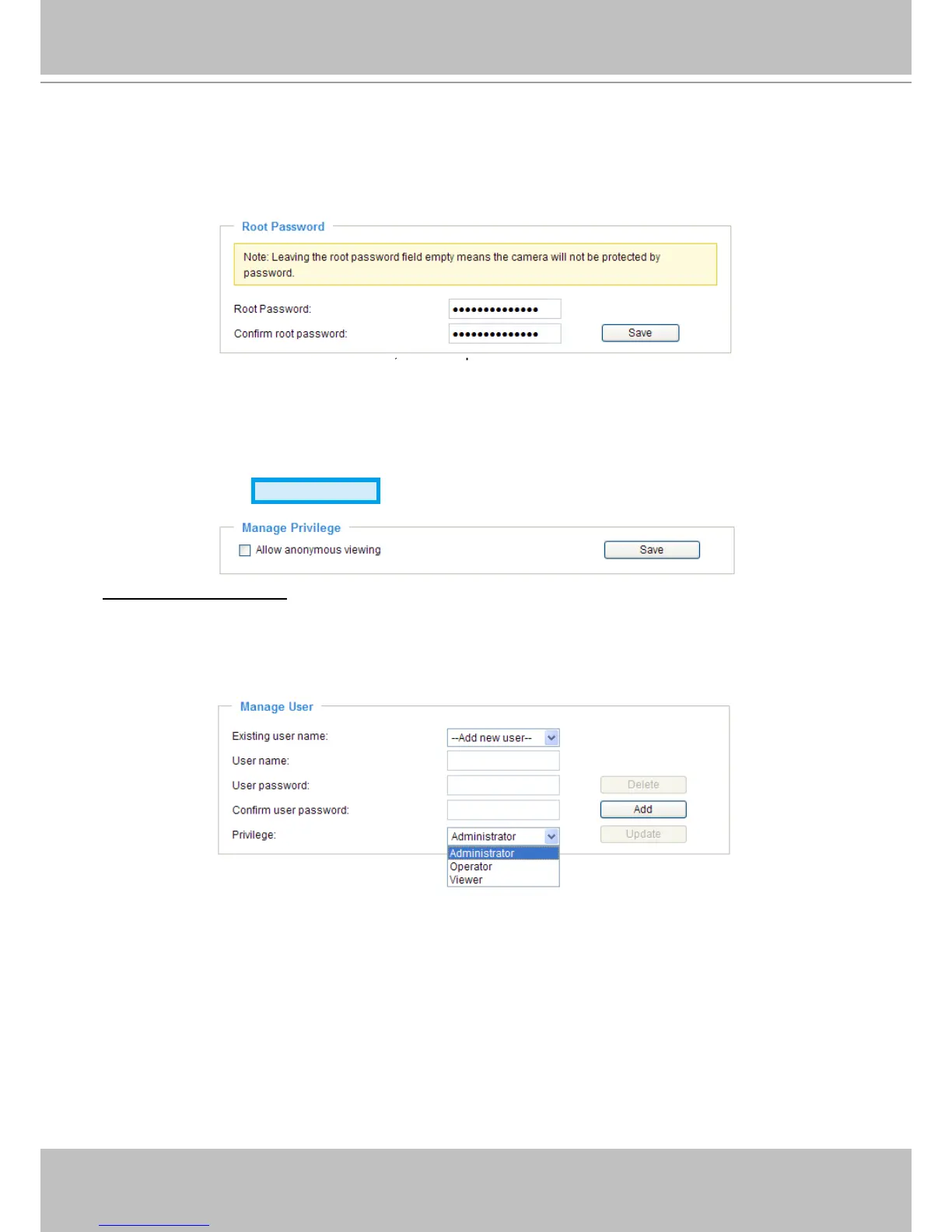 2� Select the privilege level for the new user account� Click Add to enable the setting�
