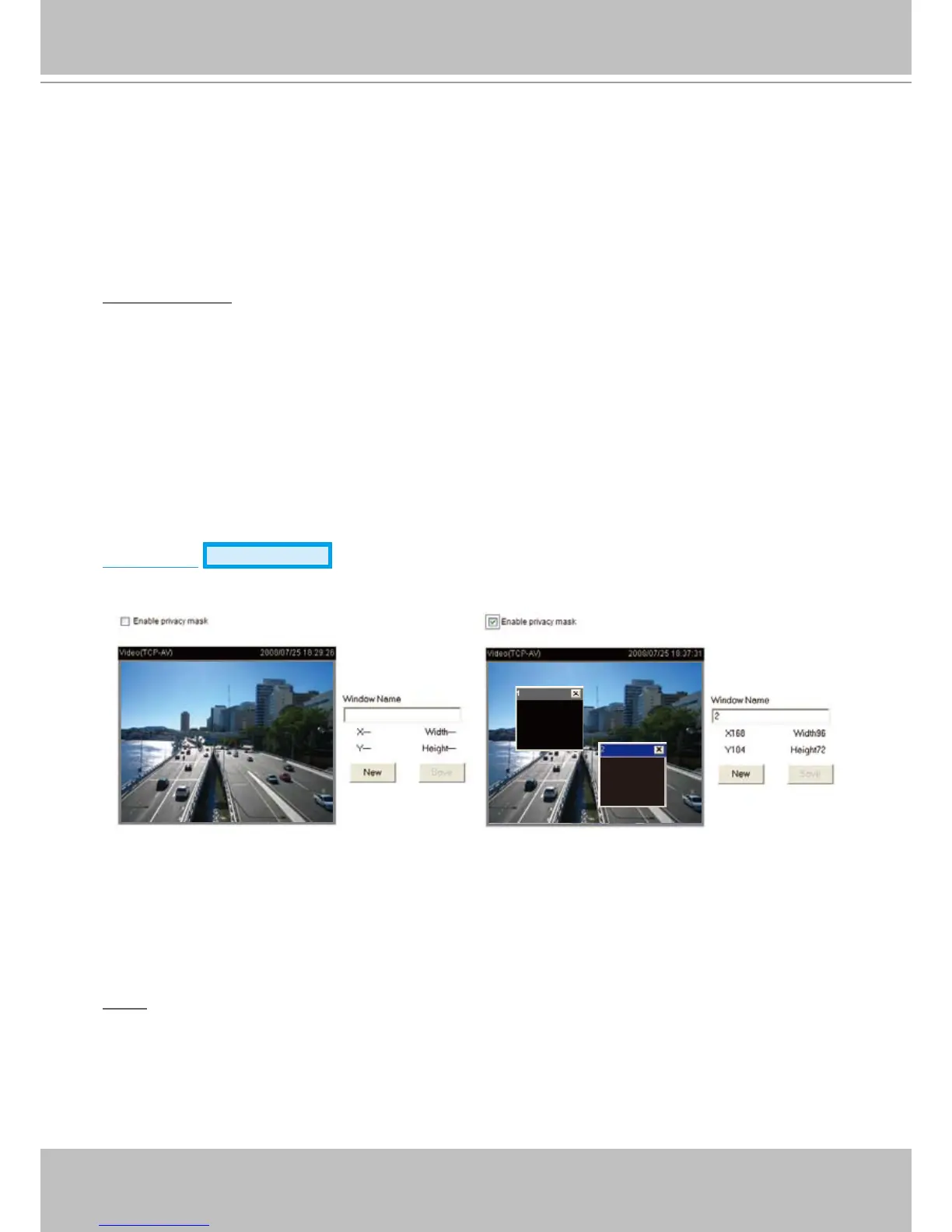► Up to 5 privacy mask windows can be set up on the same screen.