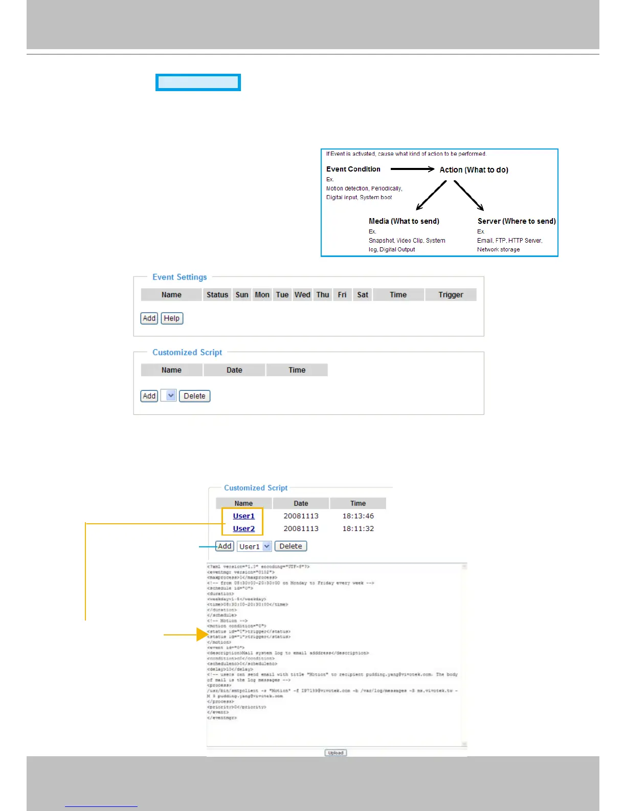 situations (event)� A typical application is that when a motion is detected, the Network Camera