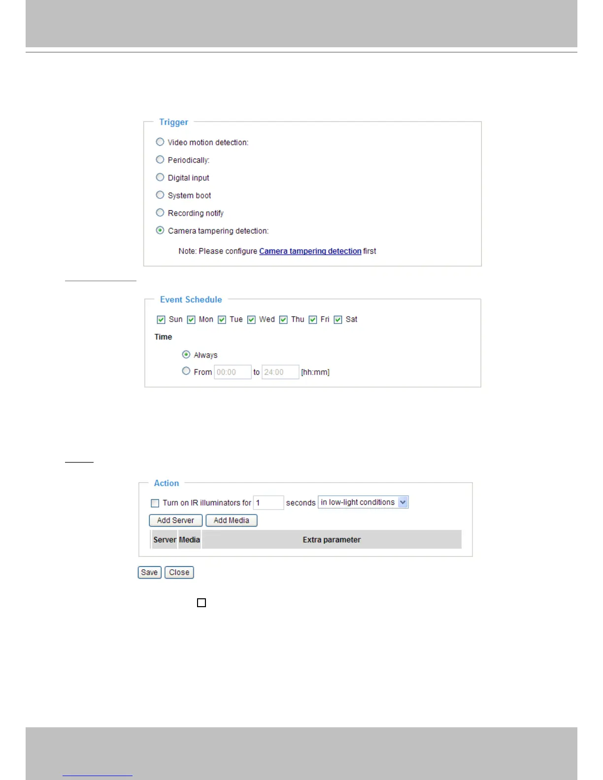 This option allows the Network Camera to trigger when the camera detects that is is being tampered