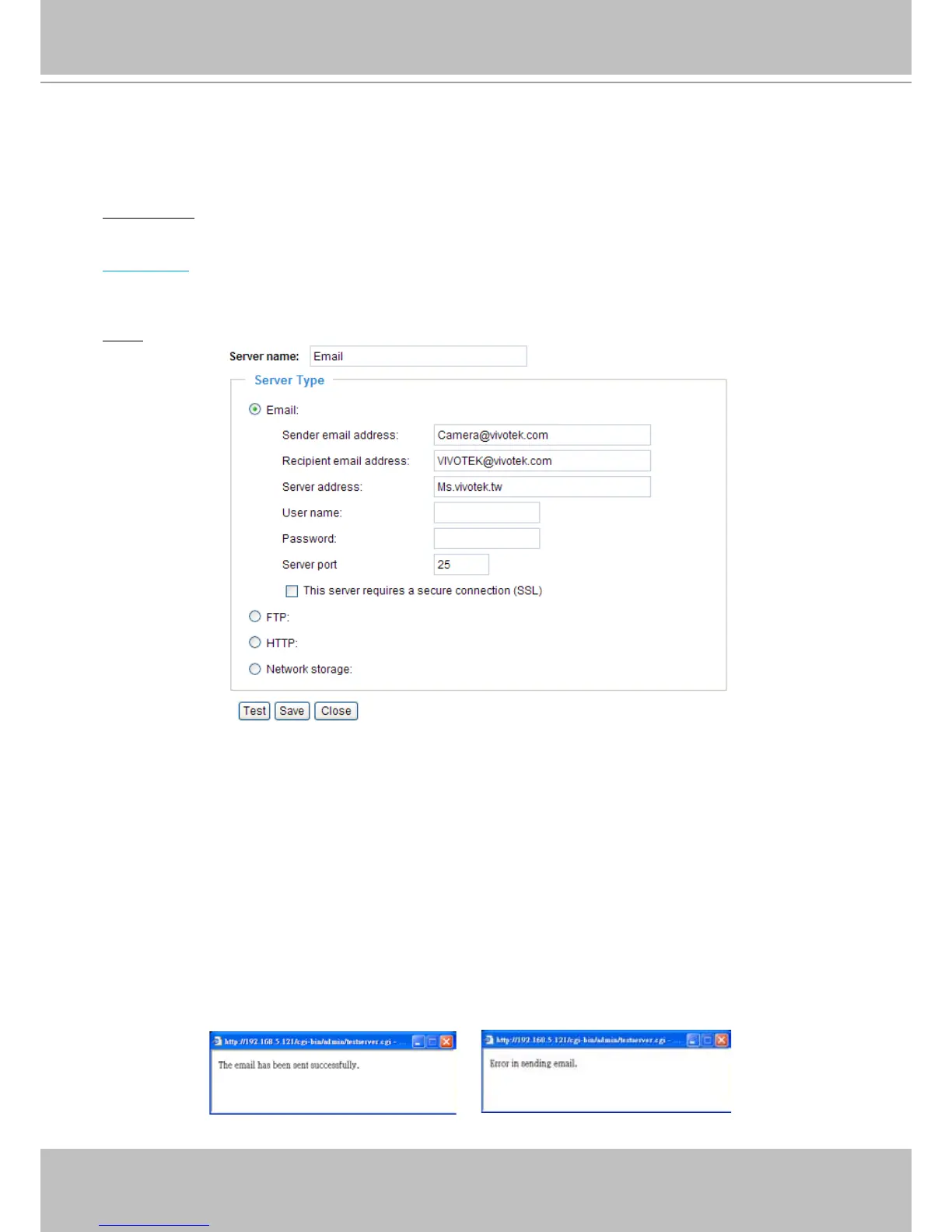 To verify if the email settings are correctly congured, click TestThe result will be shown in a pop-up