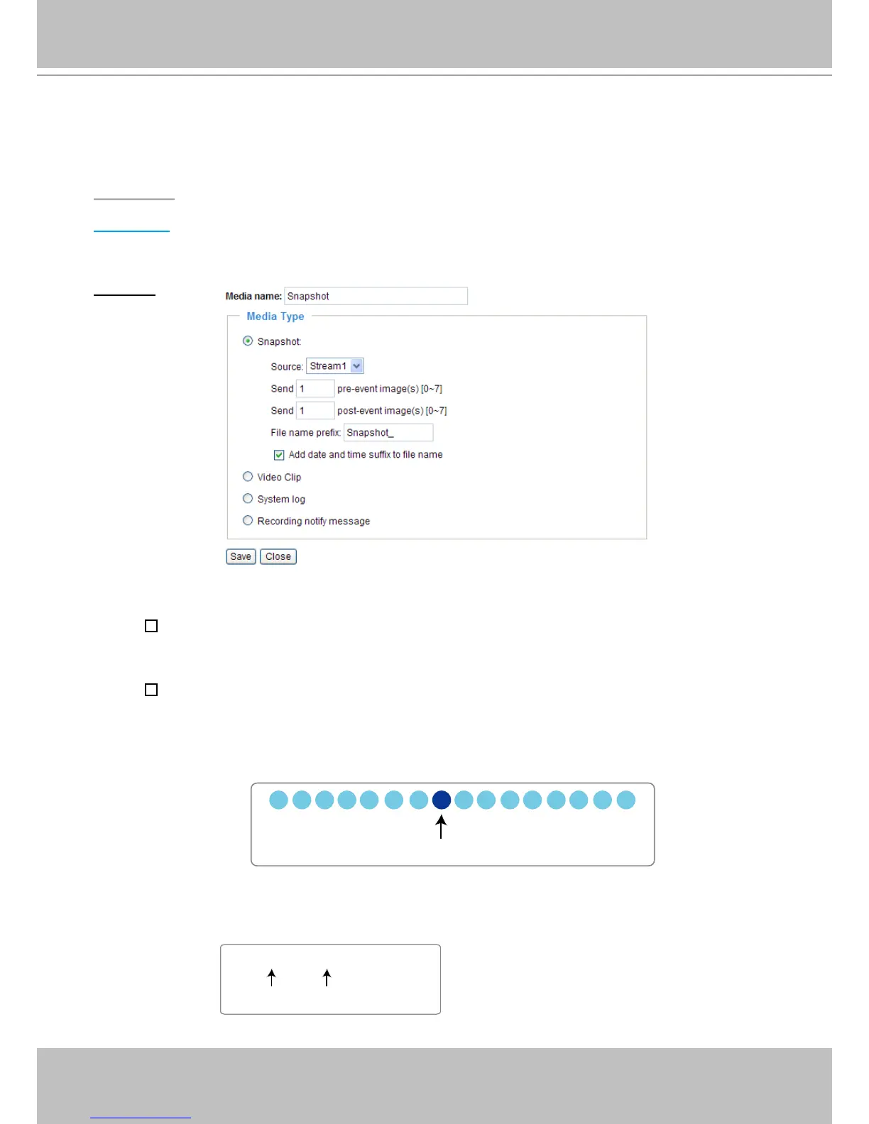 There are three choices of media types available: Snapshot, Video clip, and System log�
