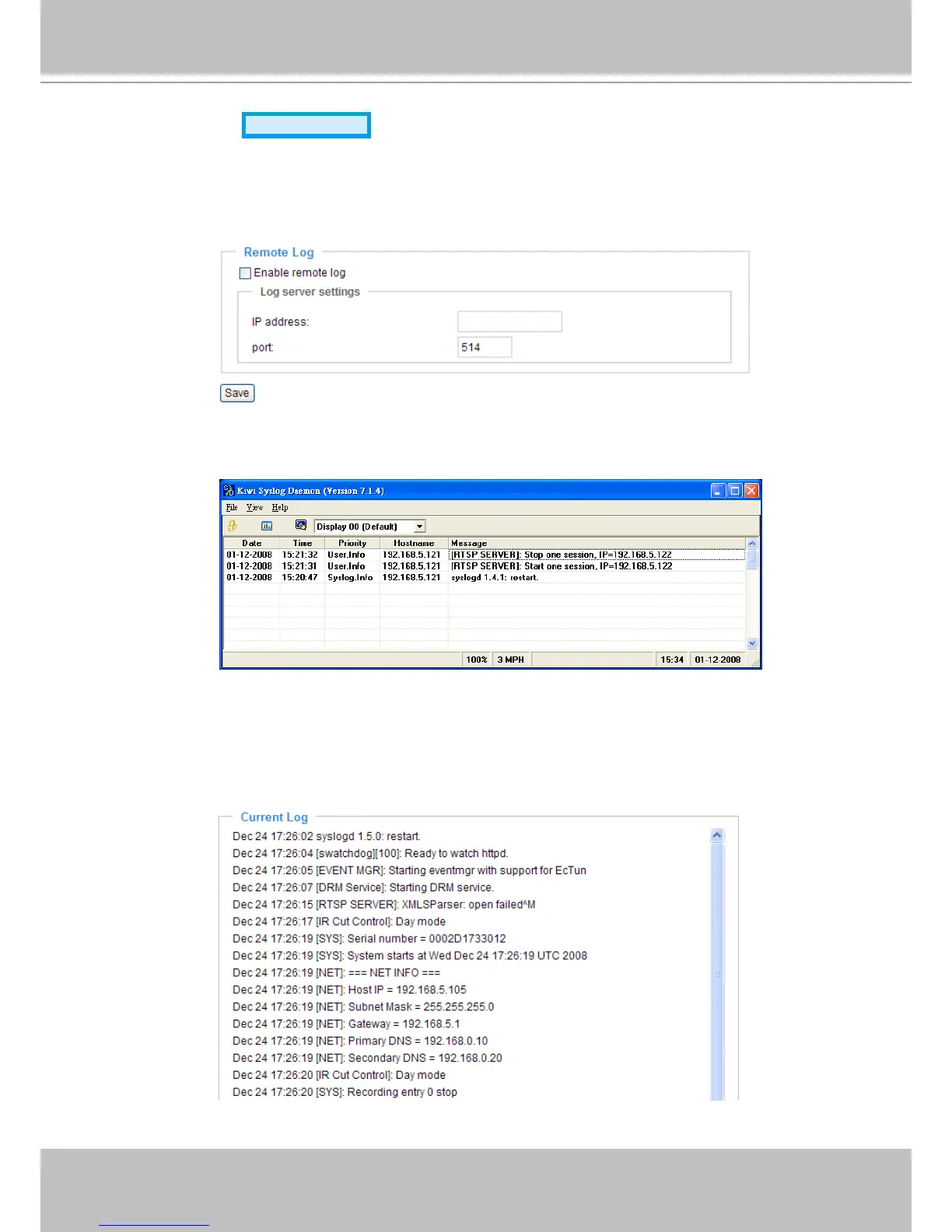 messages from the Network Camera. An example is Kiwi Syslog Daemon. Visit http://www�kiwisyslog�