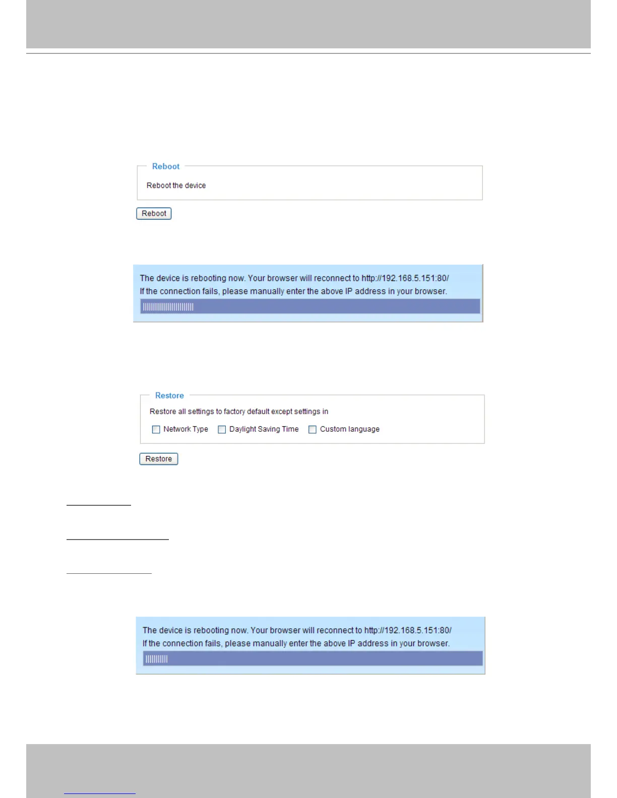 This feature allows you to reboot the Network Camera, which takes about one minute to complete� When