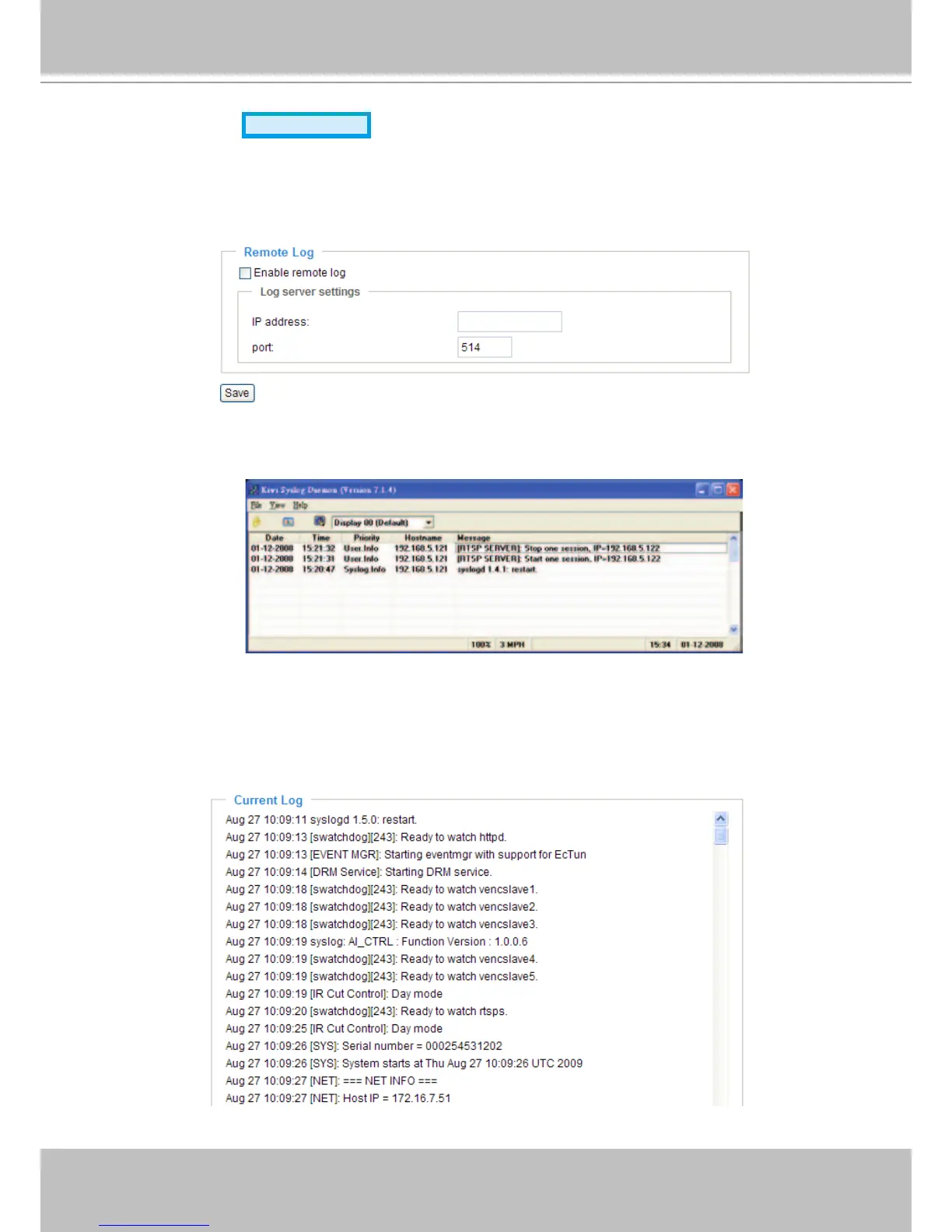 3� When completed, select Enable remote log and click Save to enable the setting�