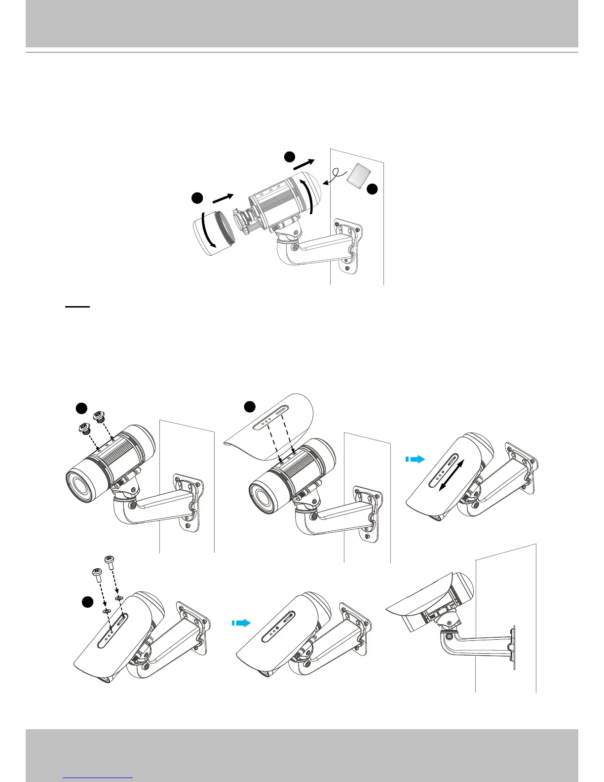 If you want to use the supplied sun shield for outdoor environments, please follow the steps