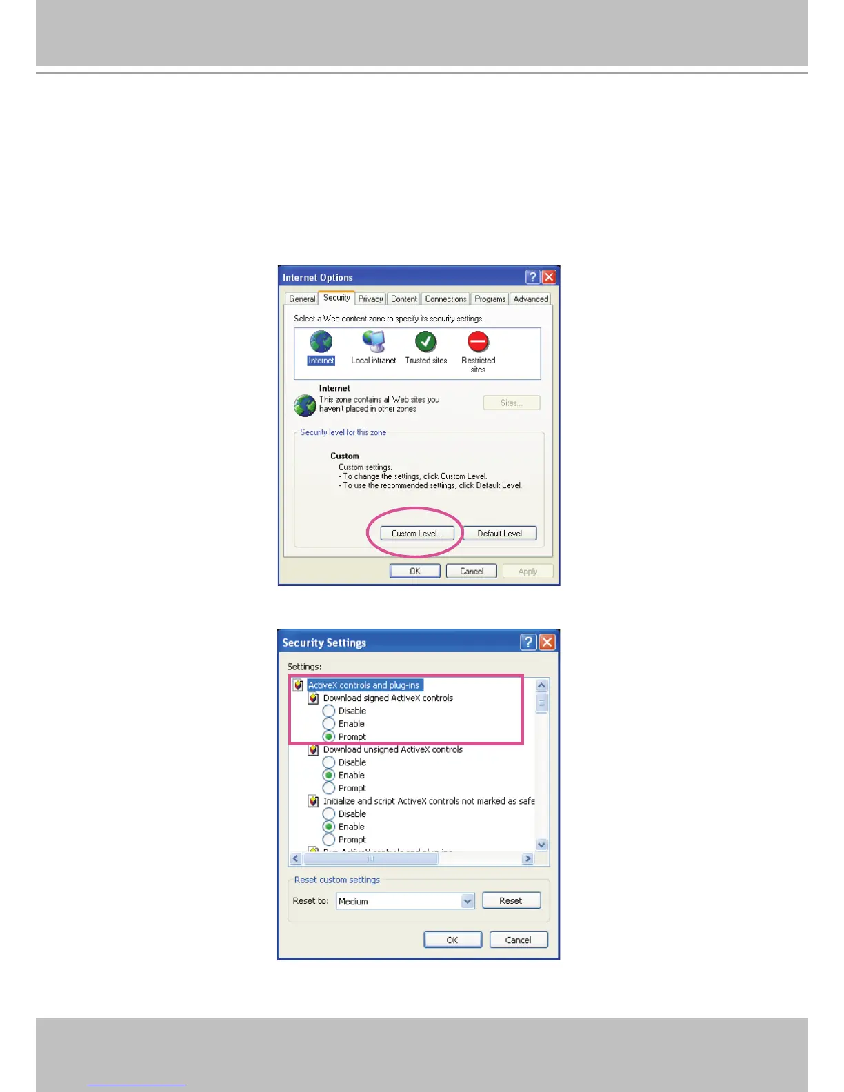 ► If you see a dialog box indicating that your security settings prohibit running ActiveX