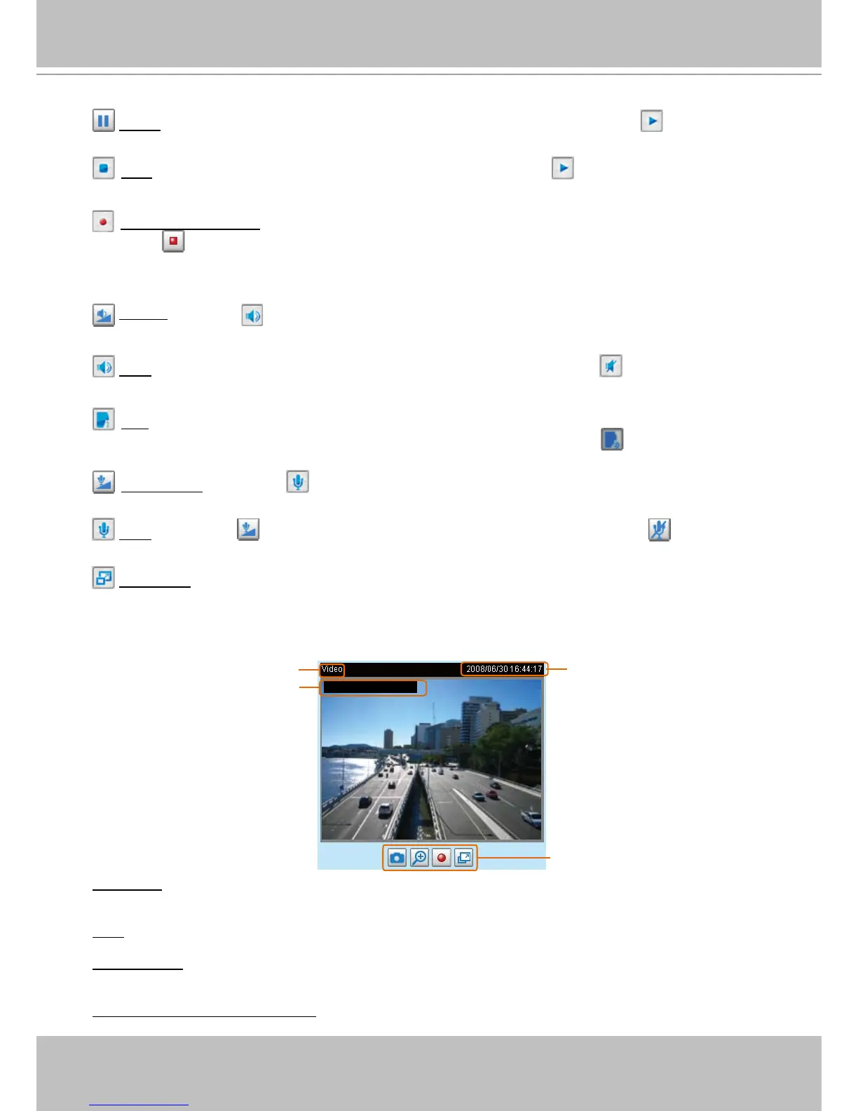 Pause: Pause the transmission of the streaming media� The button becomes the Resume button