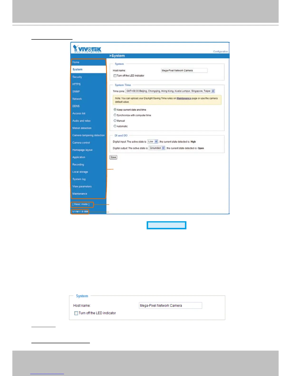 This section explains how to congure the basic settings for the Network Camera, such as the