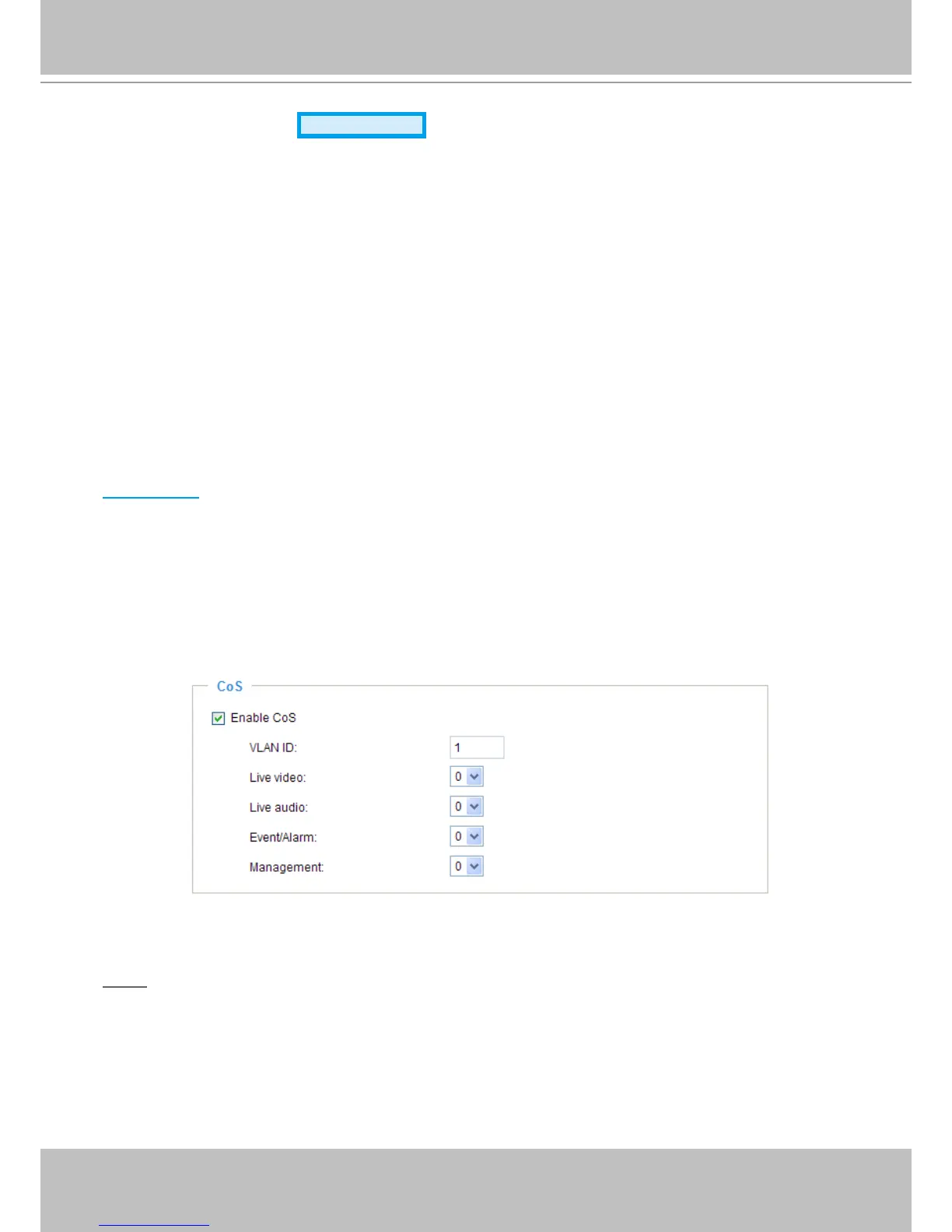 Below is the setting column for CoS� Enter the VLAN ID of your switch (0~4095) and choose the priority