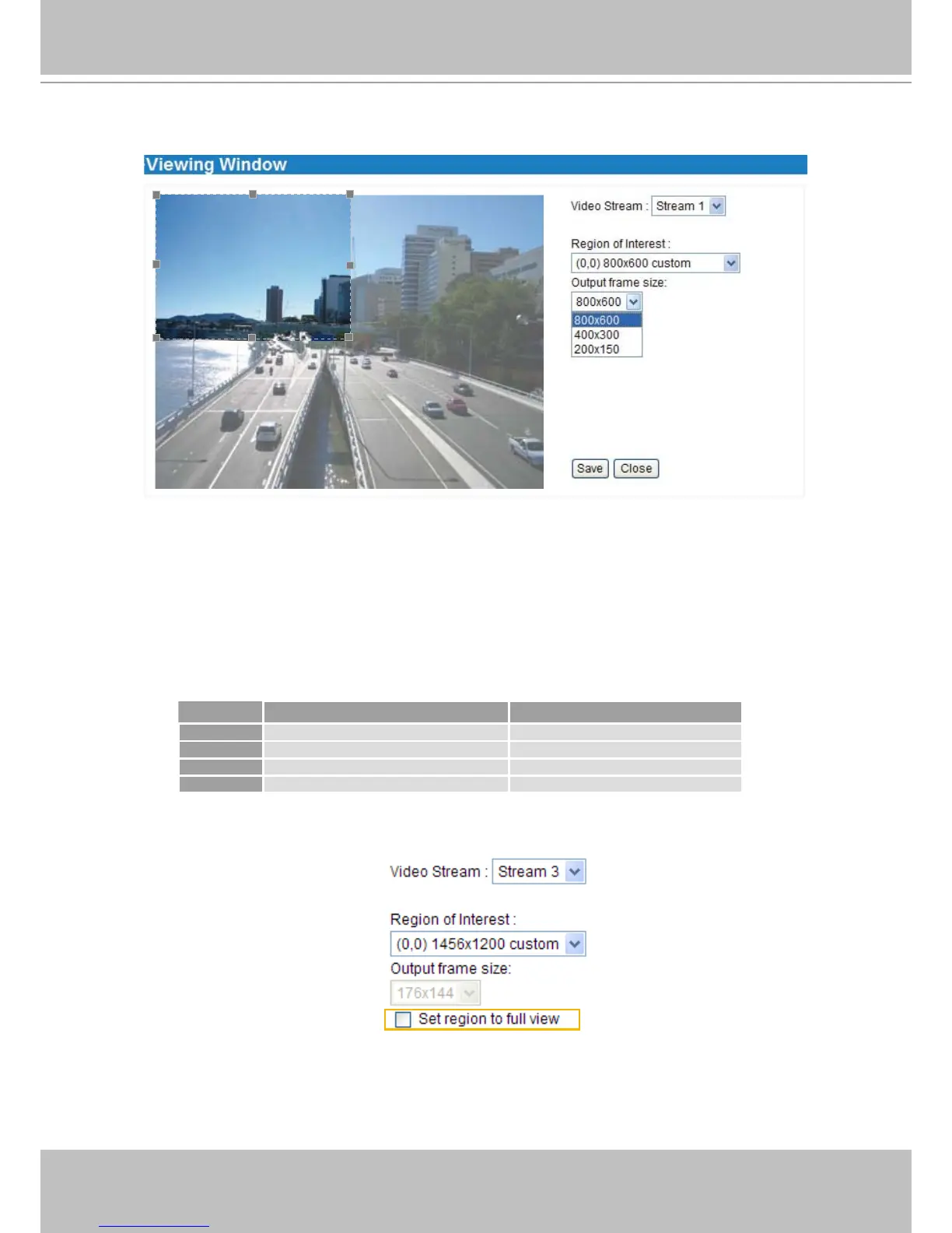 of Interest and the Output Frame Size for stream 1 ~ 3�