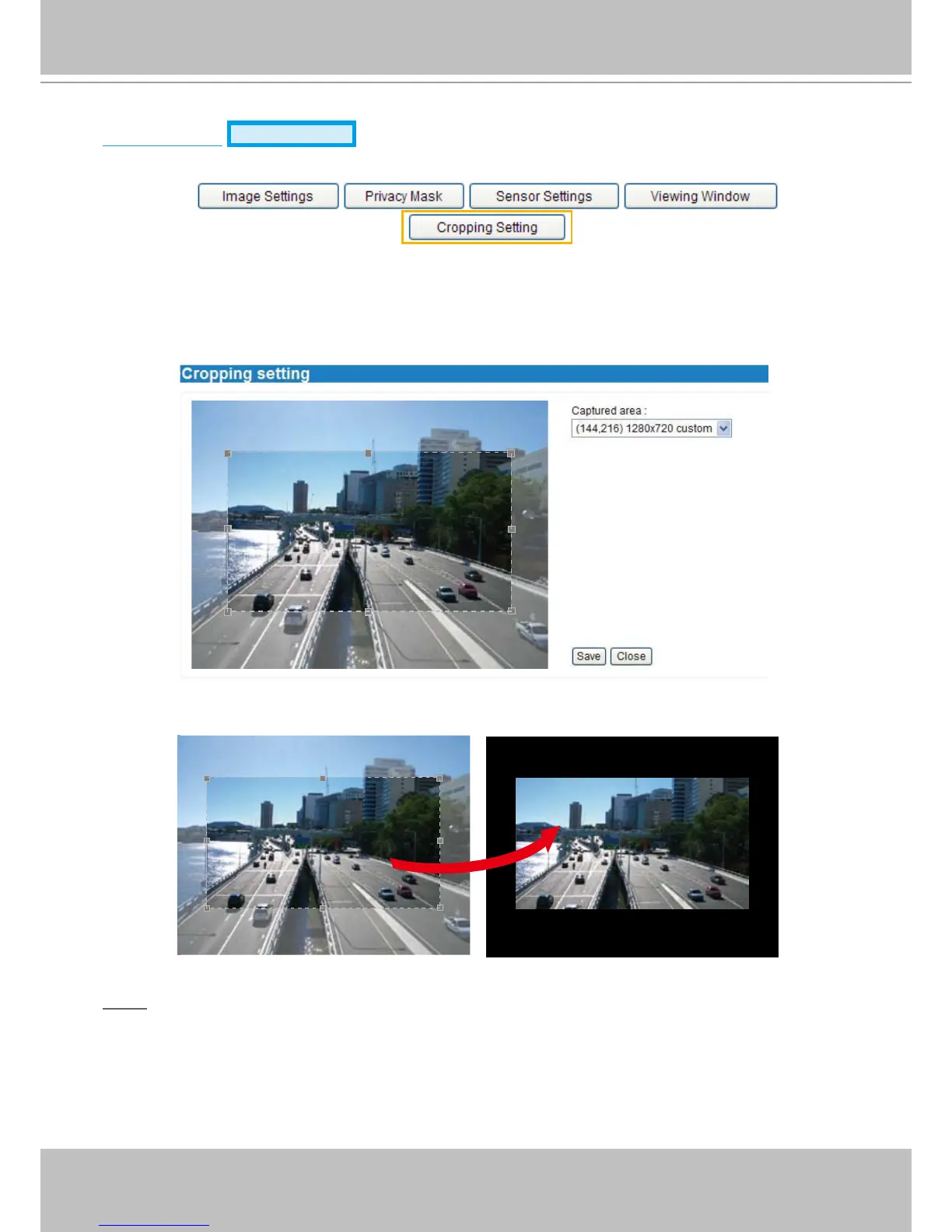 ► Select cropping mode will clear the settings in the Viewing Window and disable Motion Detection,