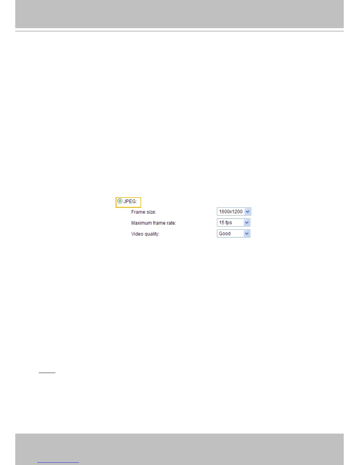 If JPEG mode is selected, the Network Camera continuously sends JPEG images to the client, producing
