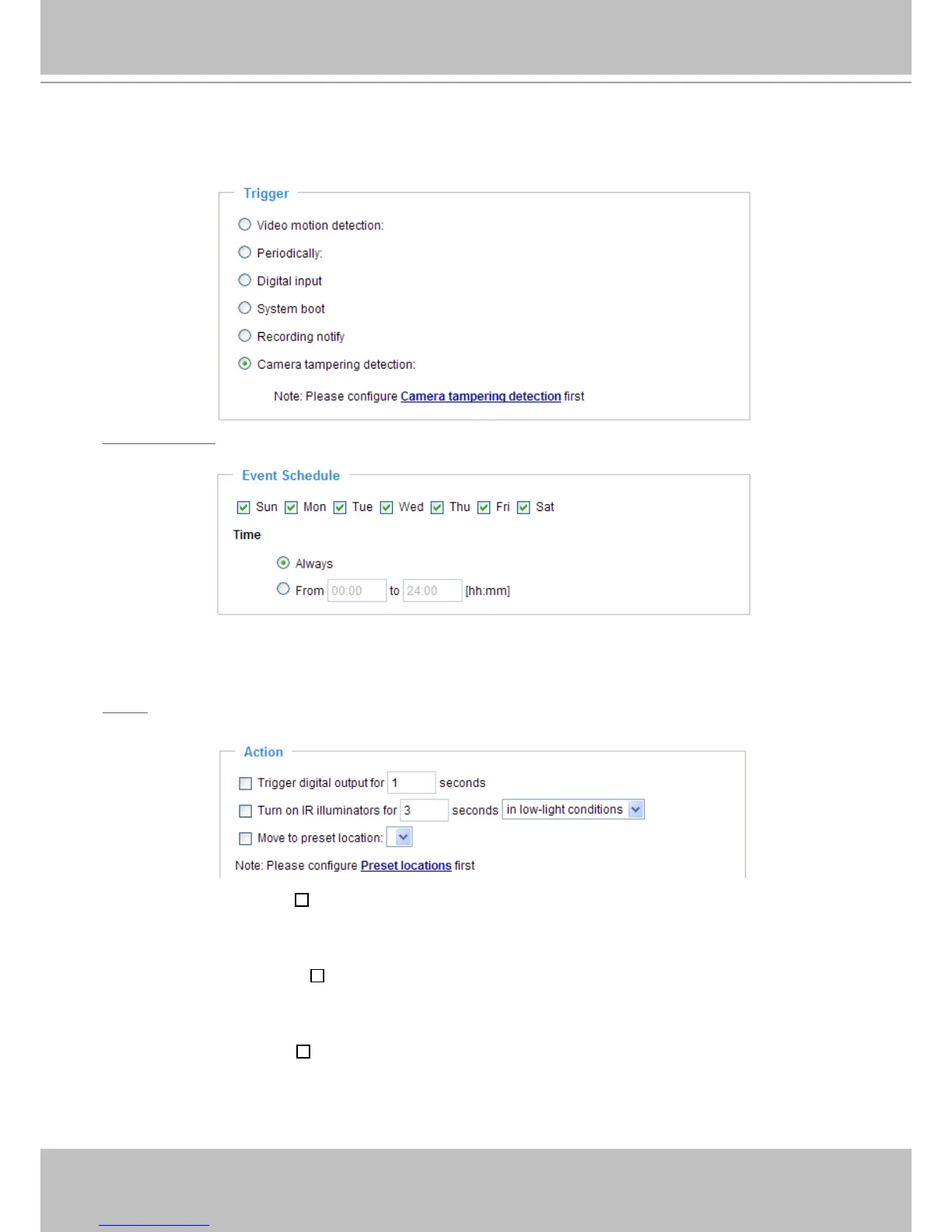 This option allows the Network Camera to trigger when the camera detects that is is being tampered