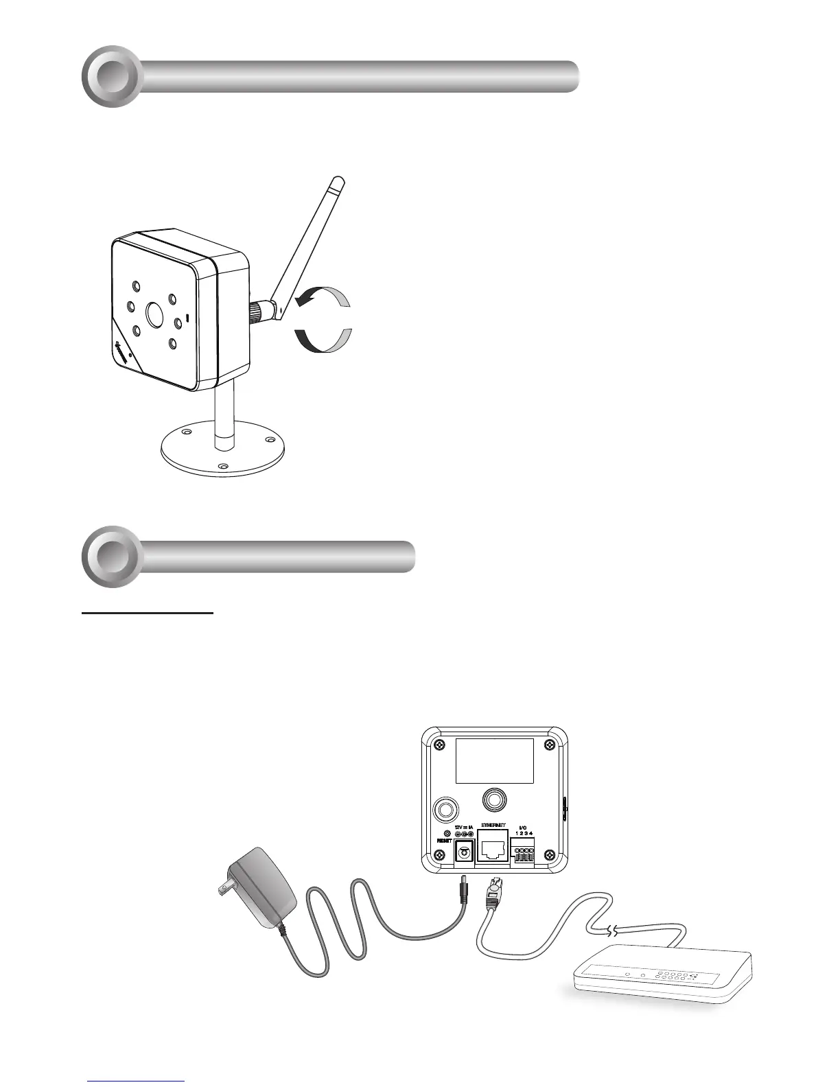 An antenna comes with the camera. Install it by turning clockwise to attach to the