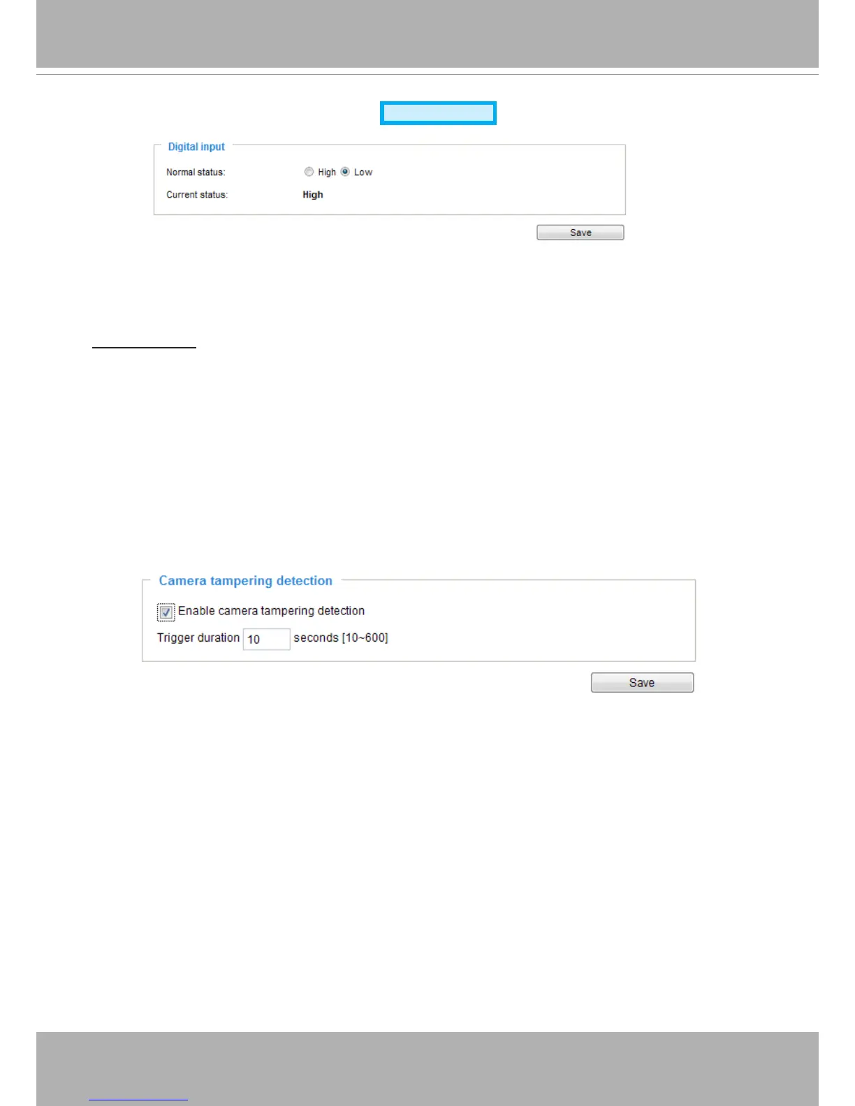 This section explains how to set up camera tamper detection� With tamper detection, the