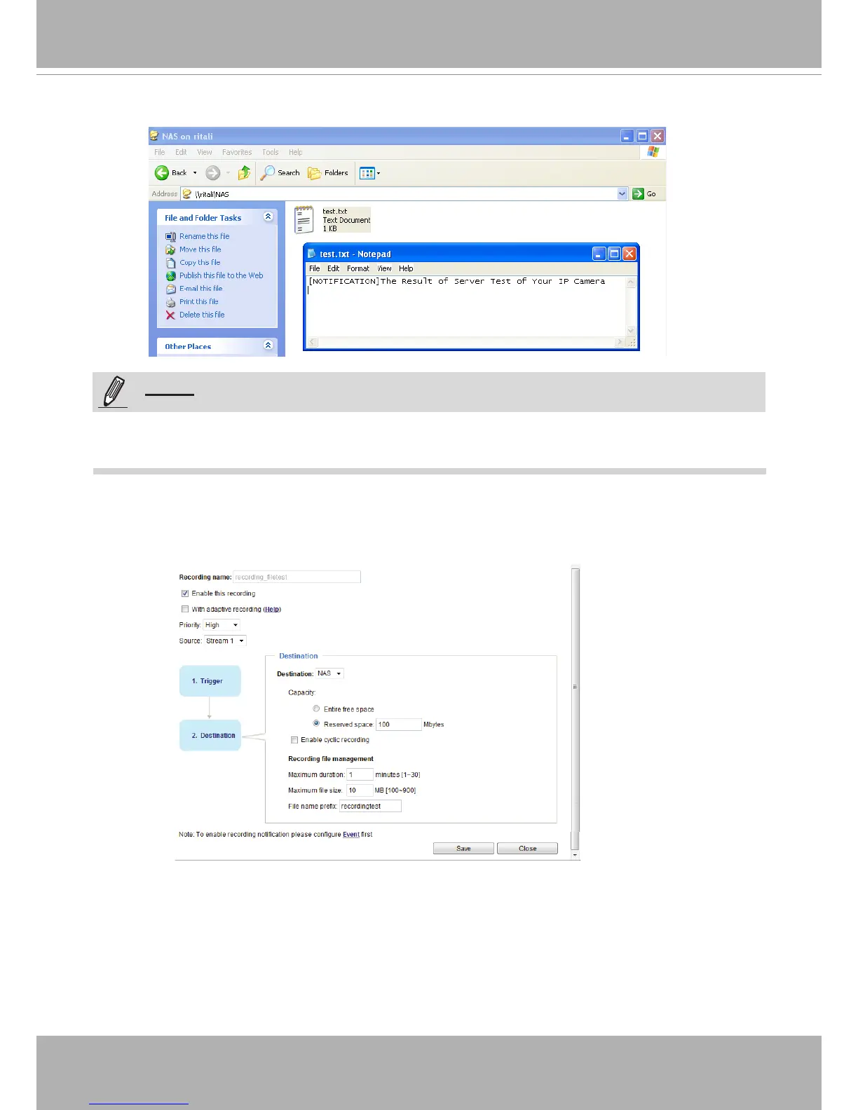 Back to the Recording setup page, you can now record videos to the networked storage�