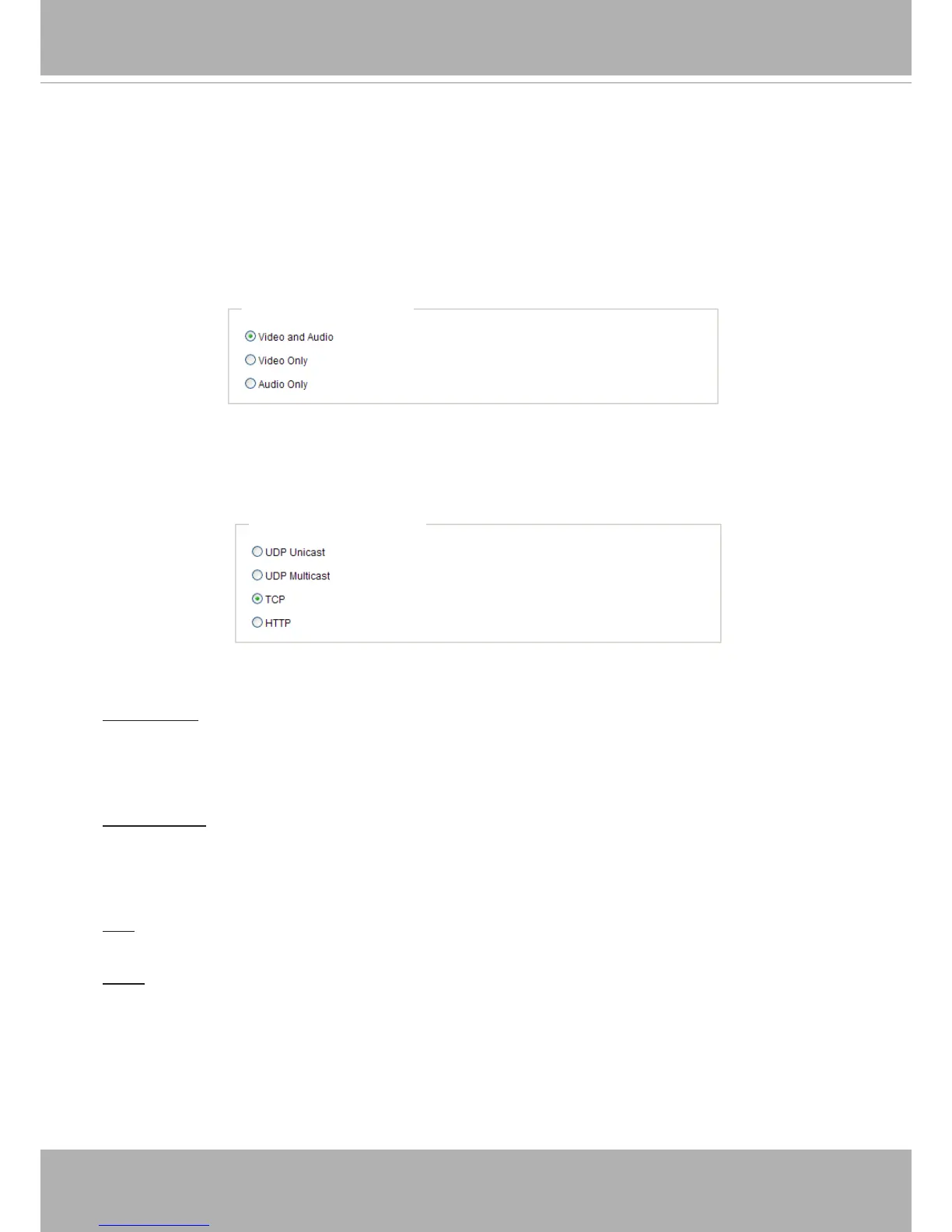 Select to stream video or audio data or both� This is enabled only when the video mode is set to H�264 or
