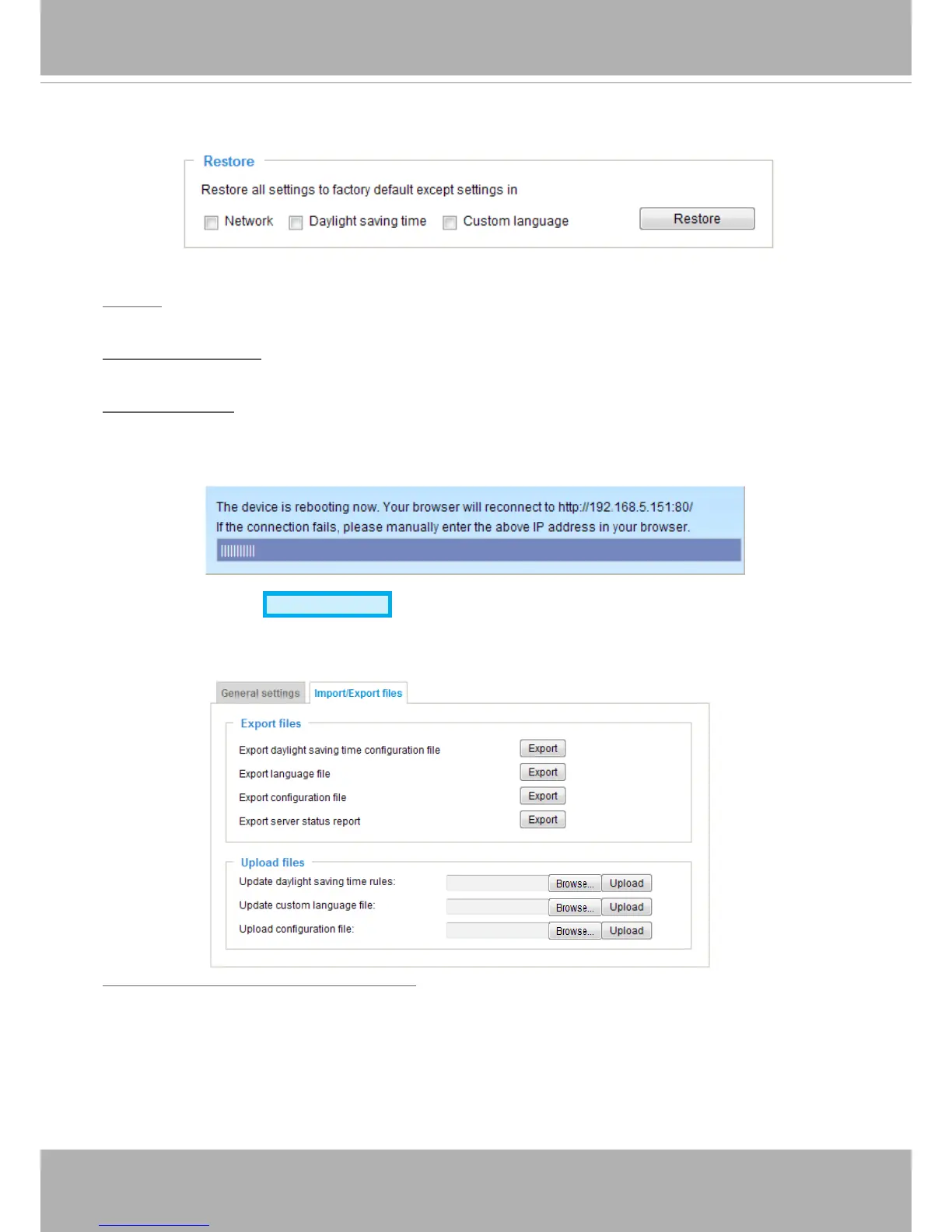 This feature allows you to Export / Update daylight saving time rules, custom language le, conguration