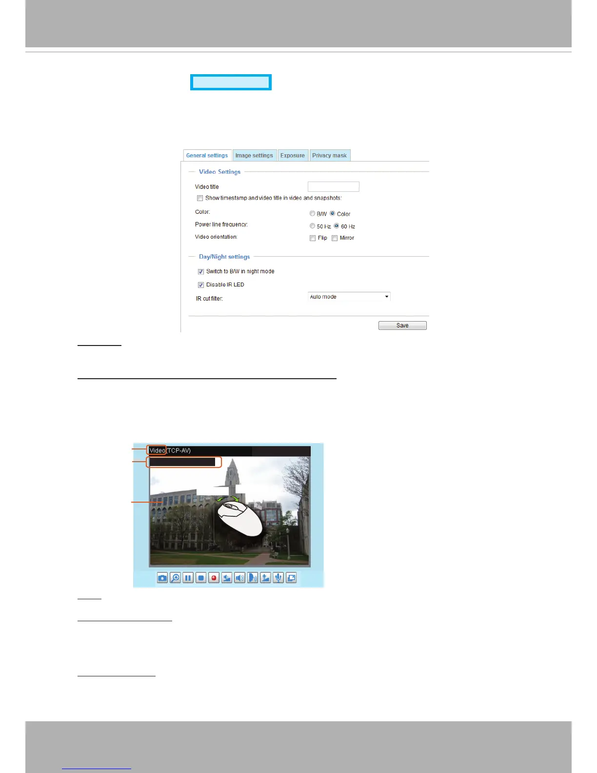Show timestamp and video title in videos and snapshots: Select this checkbox if you prefer video