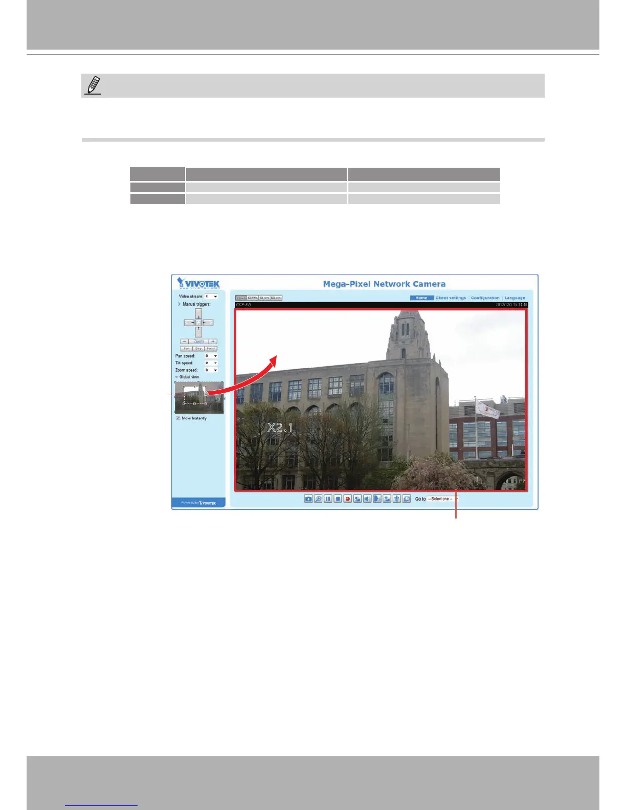 the Frame size of each video stream� Then you can go back to the home page to test the e-PTZ